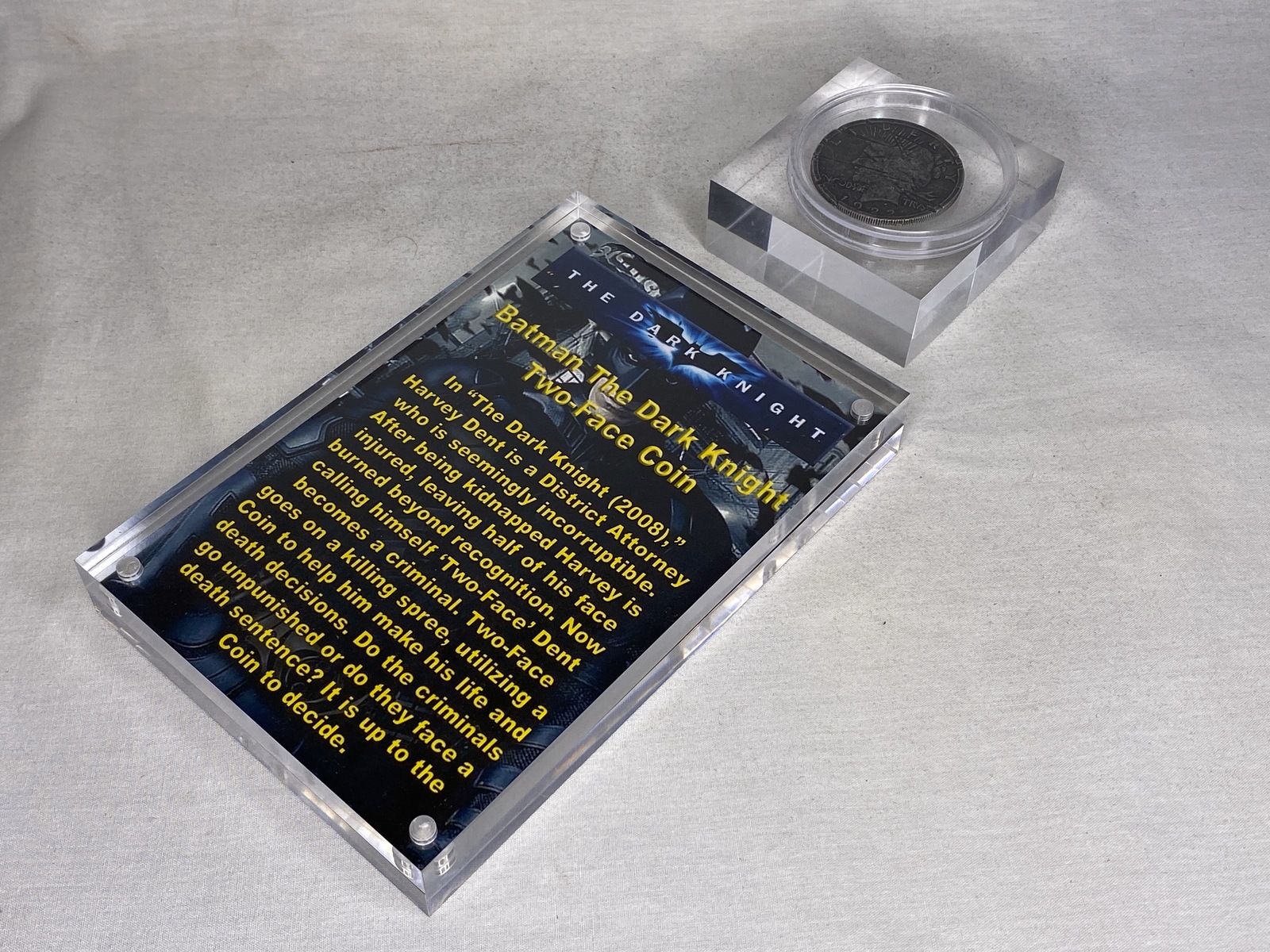 Batman The Dark Knight, Two Face Double Sided Coin, Metal, Plaque, Stand