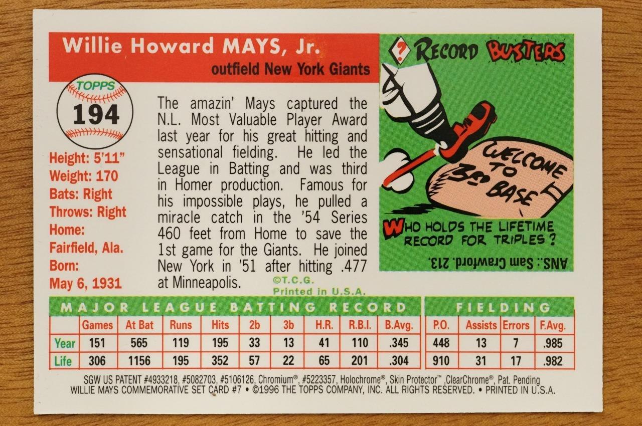 1996 Topps Chrome Willie Mays Commemorative Set #7 Reprint 194 New York Giants