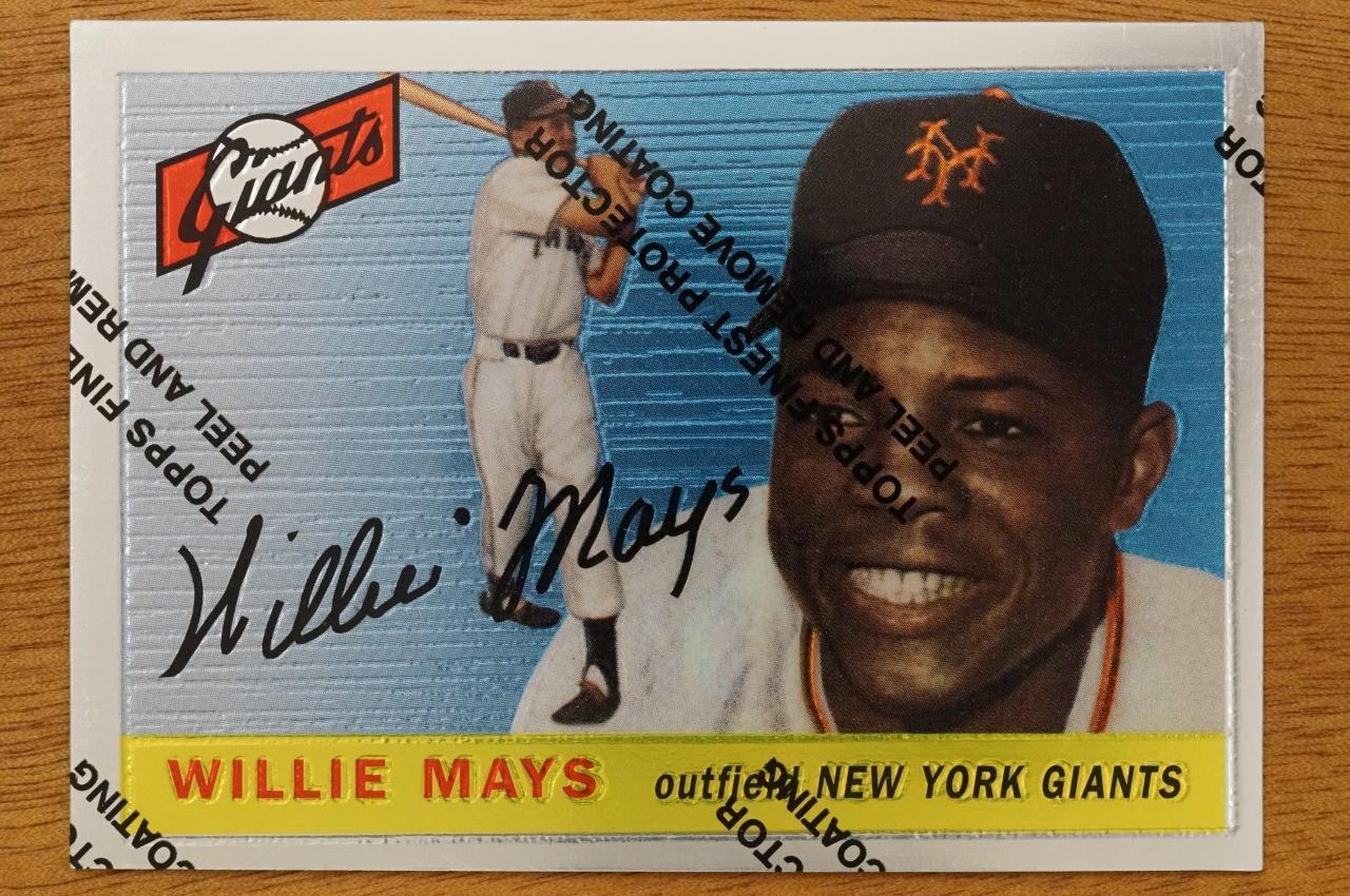 1996 Topps Chrome Willie Mays Commemorative Set #7 Reprint 194 New York Giants - coating unpeeled.