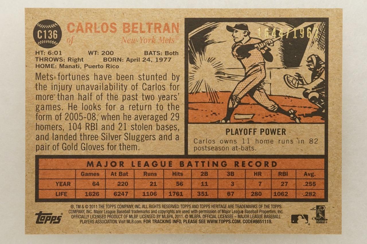 Carlos Beltran 2011 Topps Heritage Chrome C136 1644/1962 Baseball Card NY Mets