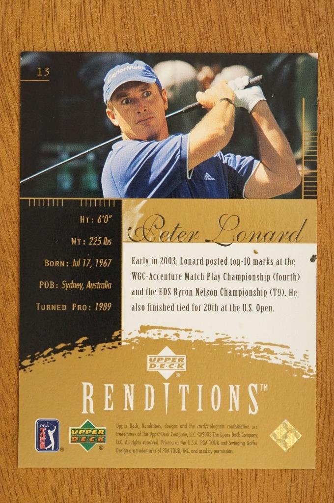 2003 Upper Deck Renditions Golf Card #13 Peter Lonard Gold Rookie 33/100
