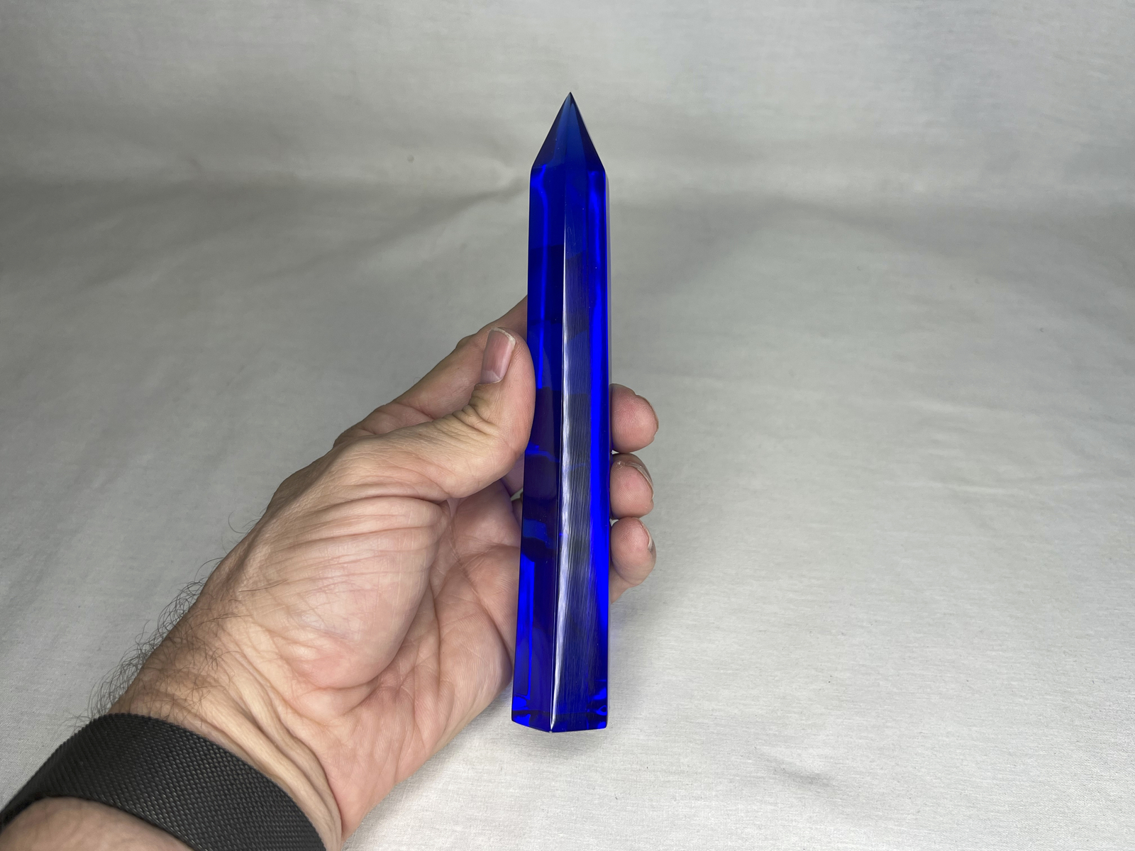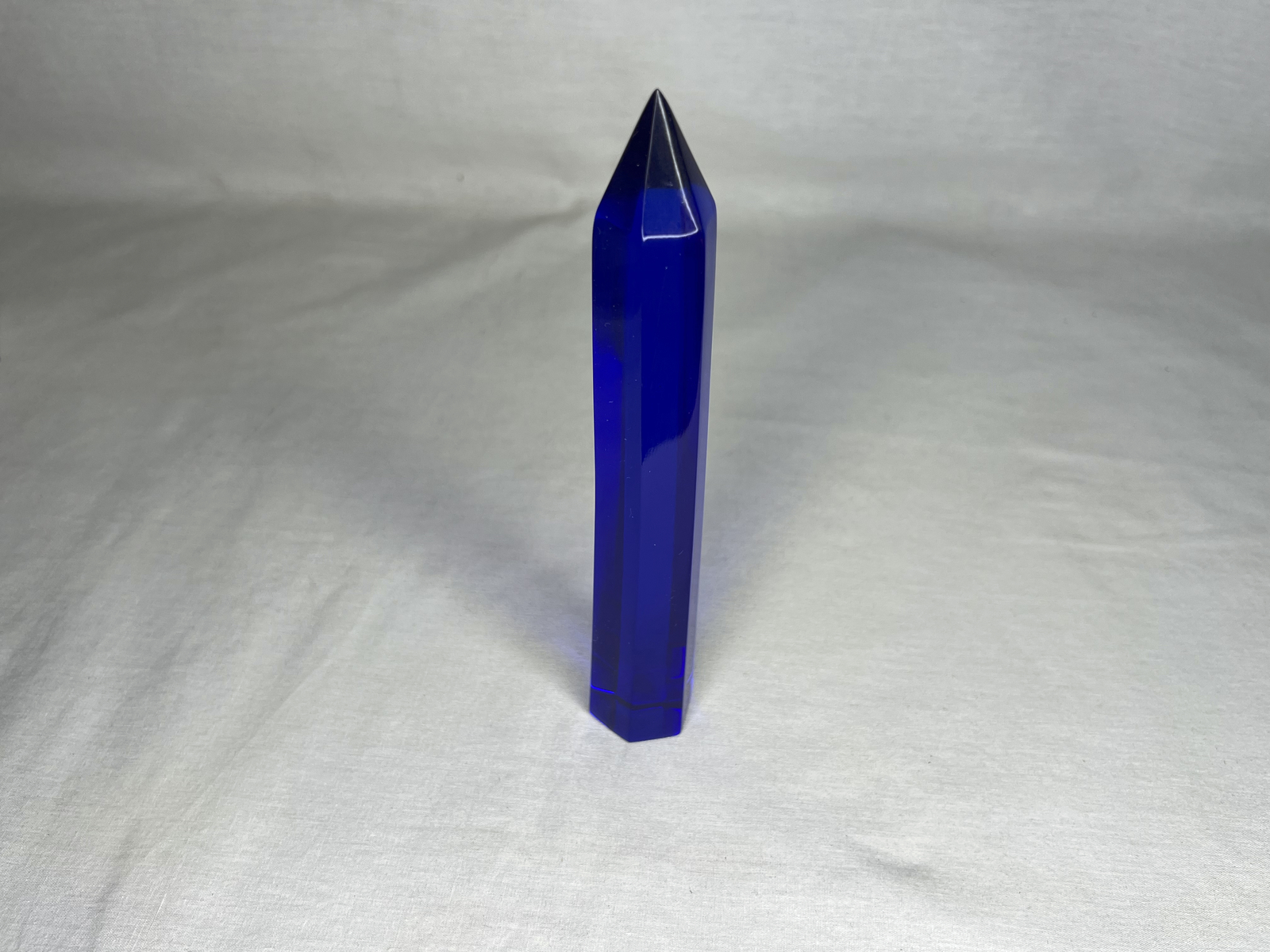 The Superman Kryptonite Crystal is Six Sided, Flat on the Bottom, and Tapers Down to a Point 1 inch from the Top. Each Real Prop Replica is made out of Translucent Solid Colored Acrylic and measures: 7 inches tall x 1 inch in diameter at base.