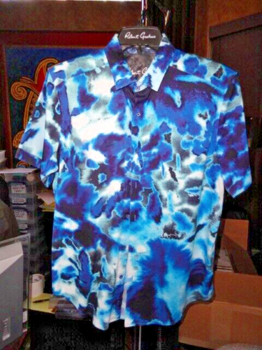 This is a pre-owned Robert Graham Sun Spots blue print short sleeve button-down shirt size medium . No issues and freshly dry cleaned. Made in India. We ship Worldwide fully insured with signature required upon arrival