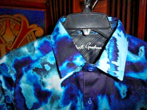 Robert Graham SUN SPOTS Blue Print Short Sleeve Button-Down Shirt Size 2XL . New with tags. Made in India. We ship Worldwide fully insured with signature required upon arrival
