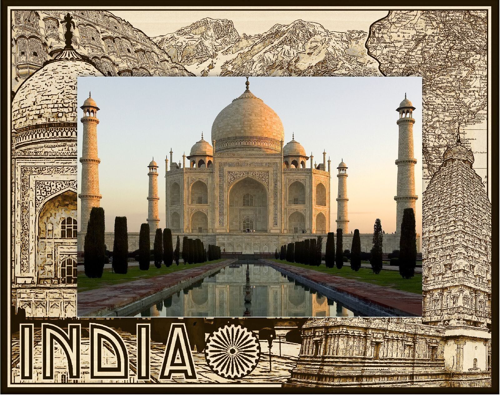 India Laser Engraved Wood Picture Frame Landscape (5 x 7)