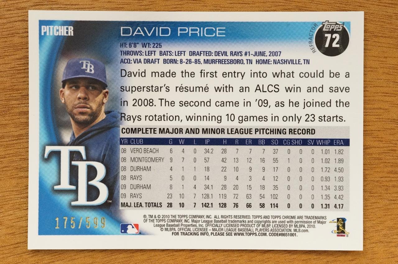 2010 Topps Chrome Purple Refractors #72 David Price 175/599 Tampa Bay Rays