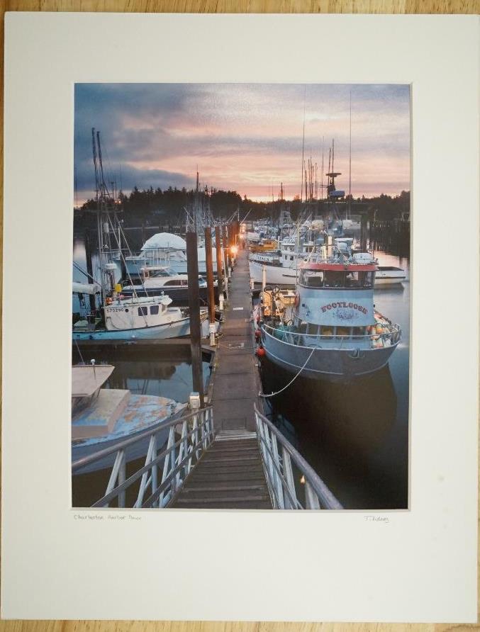Tom Adams Photography Charleston Harbor Dawn Oregon Matted Photo Art 11X14. The photo size in the matte is 9.75" by 6.75" - Will fit in a standard frame. Titled and signed in pencil by the photographer.
