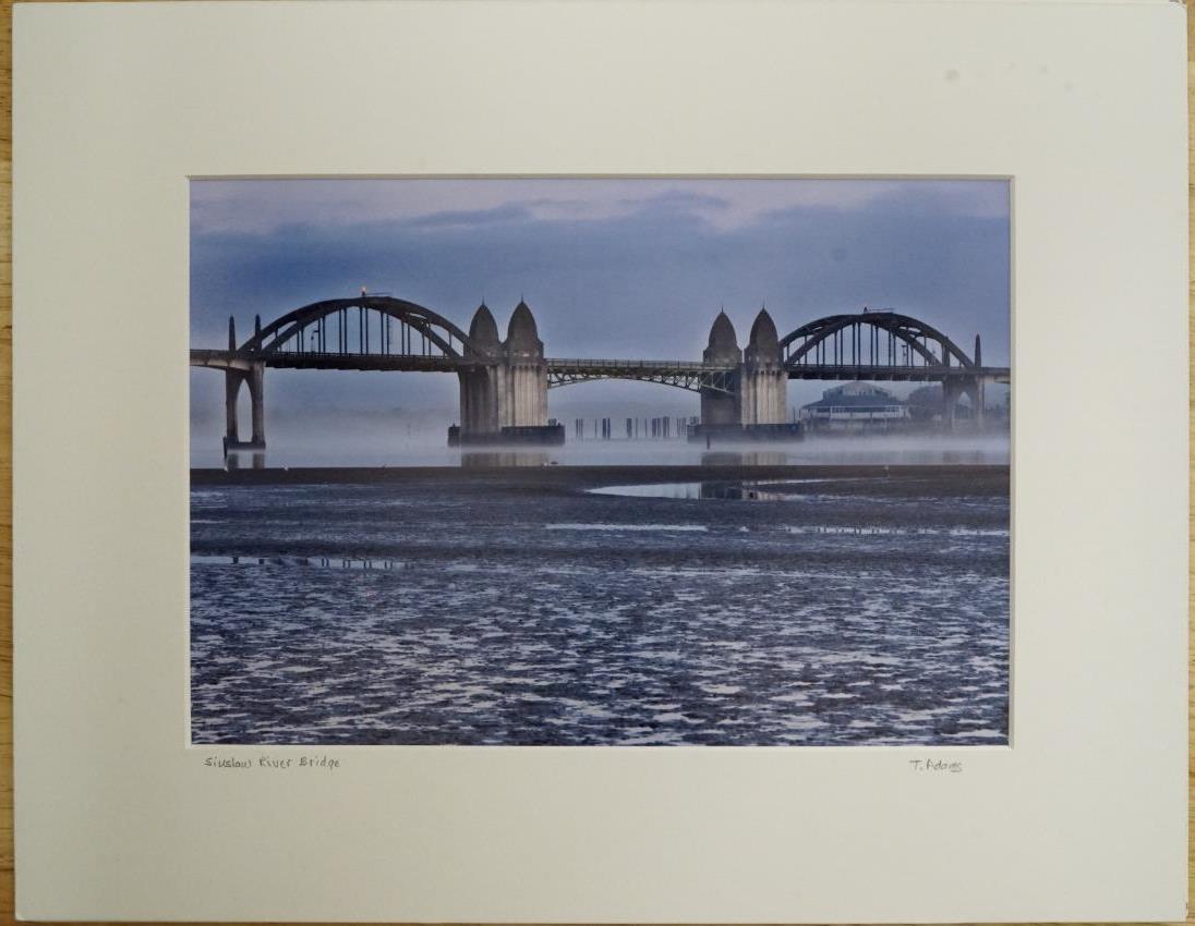Tom Adams Photography Siuslaw River Art Deco Bridge Oregon Matted Photo 11X14. The photo size in the matte is 9.75" by 6.75" - Will fit in a standard frame. Titled and signed in pencil by the photographer.