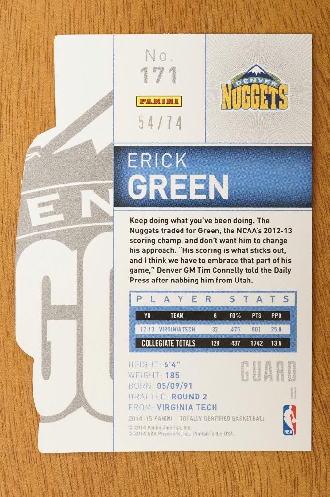 2014-15 Totally Certified Platinum Blue #171 Erick Green 54/74 Denver Nuggets
