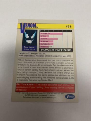 1991 Impel Marvel Universe #58 VENOM Lot of and 49 similar items