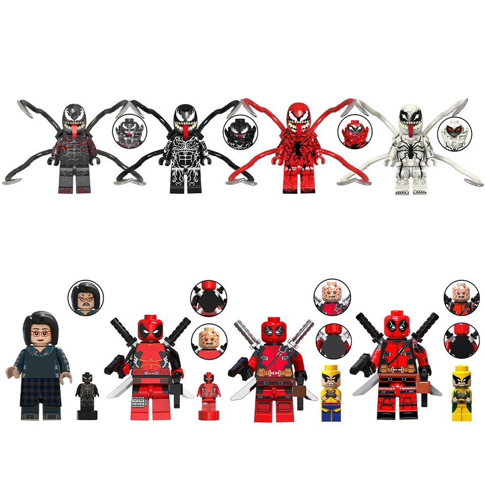 8pcs Marvel Deadpool Wolverine Venom Riot Carnage Mrs. Chen Minifigures Set