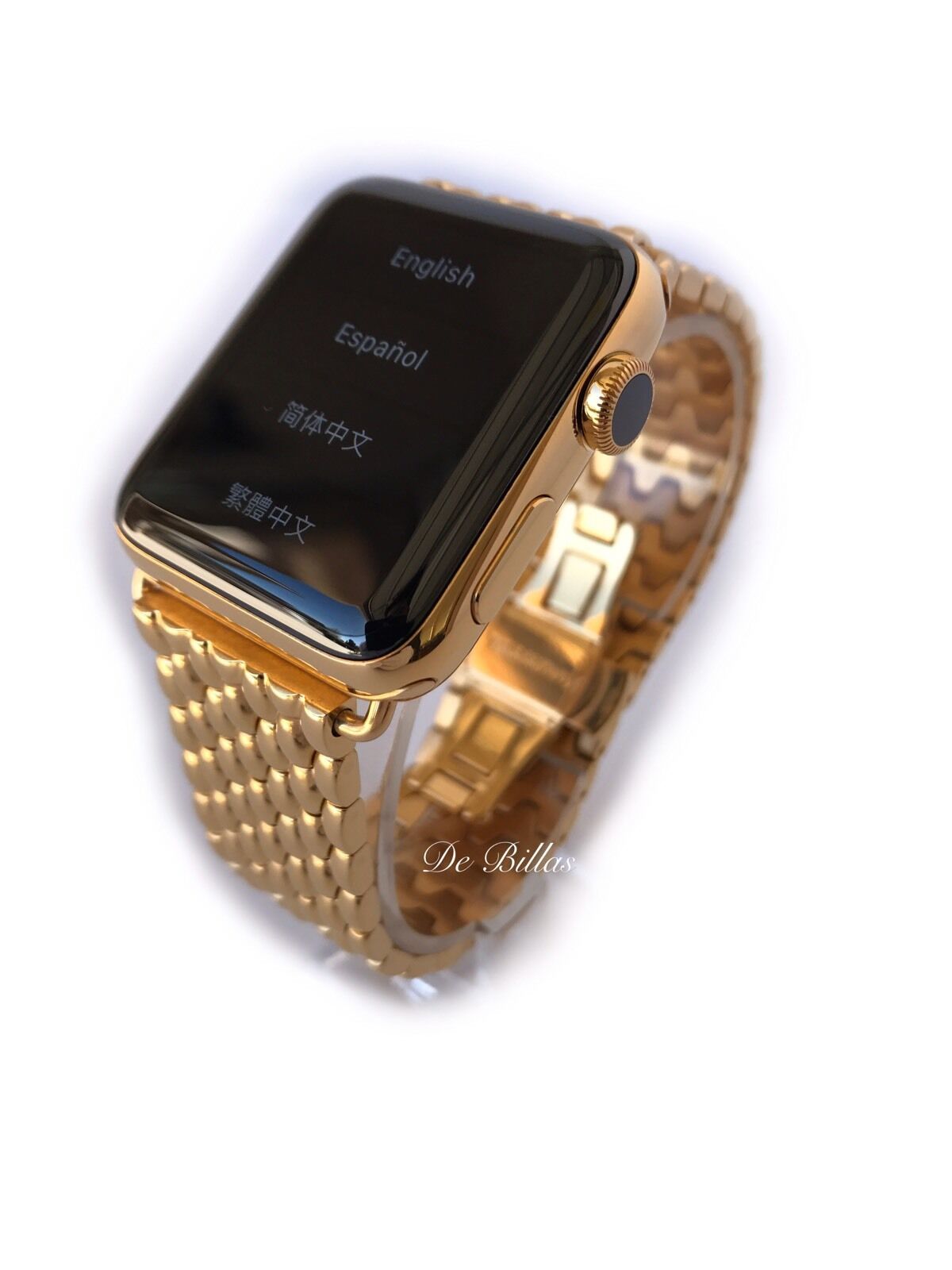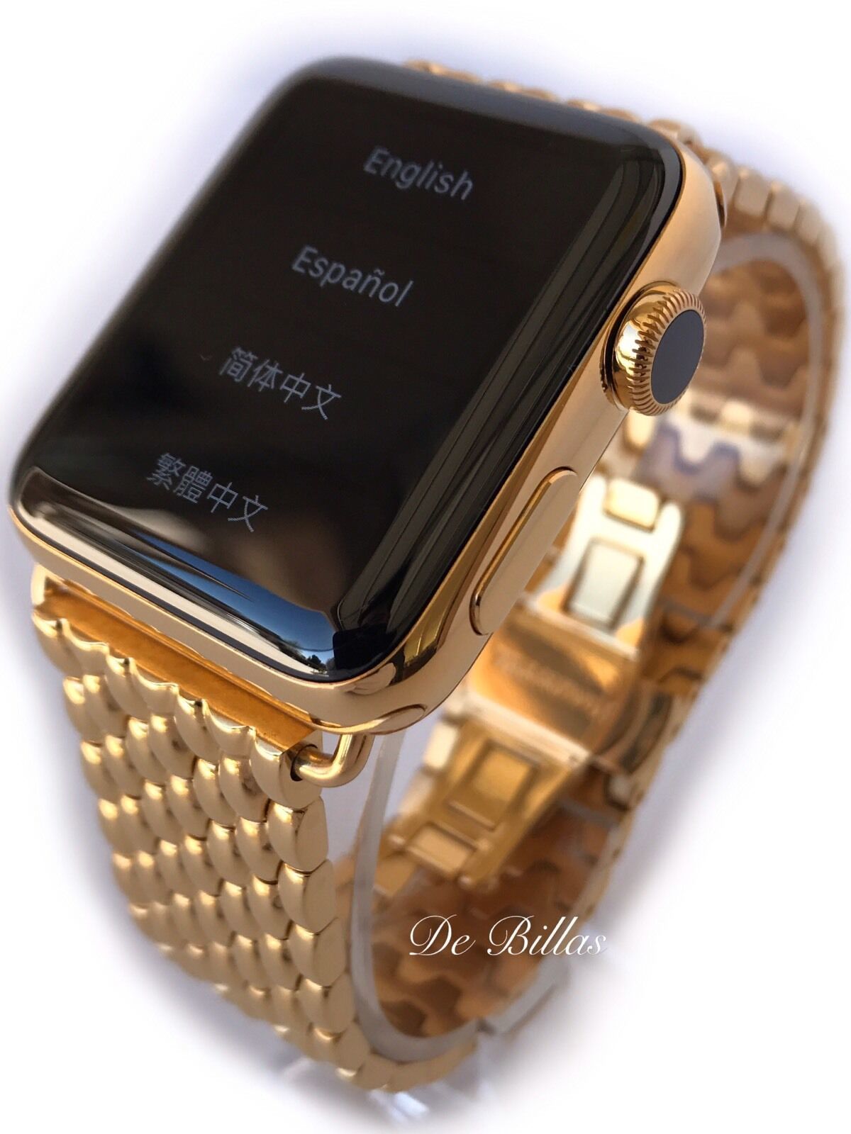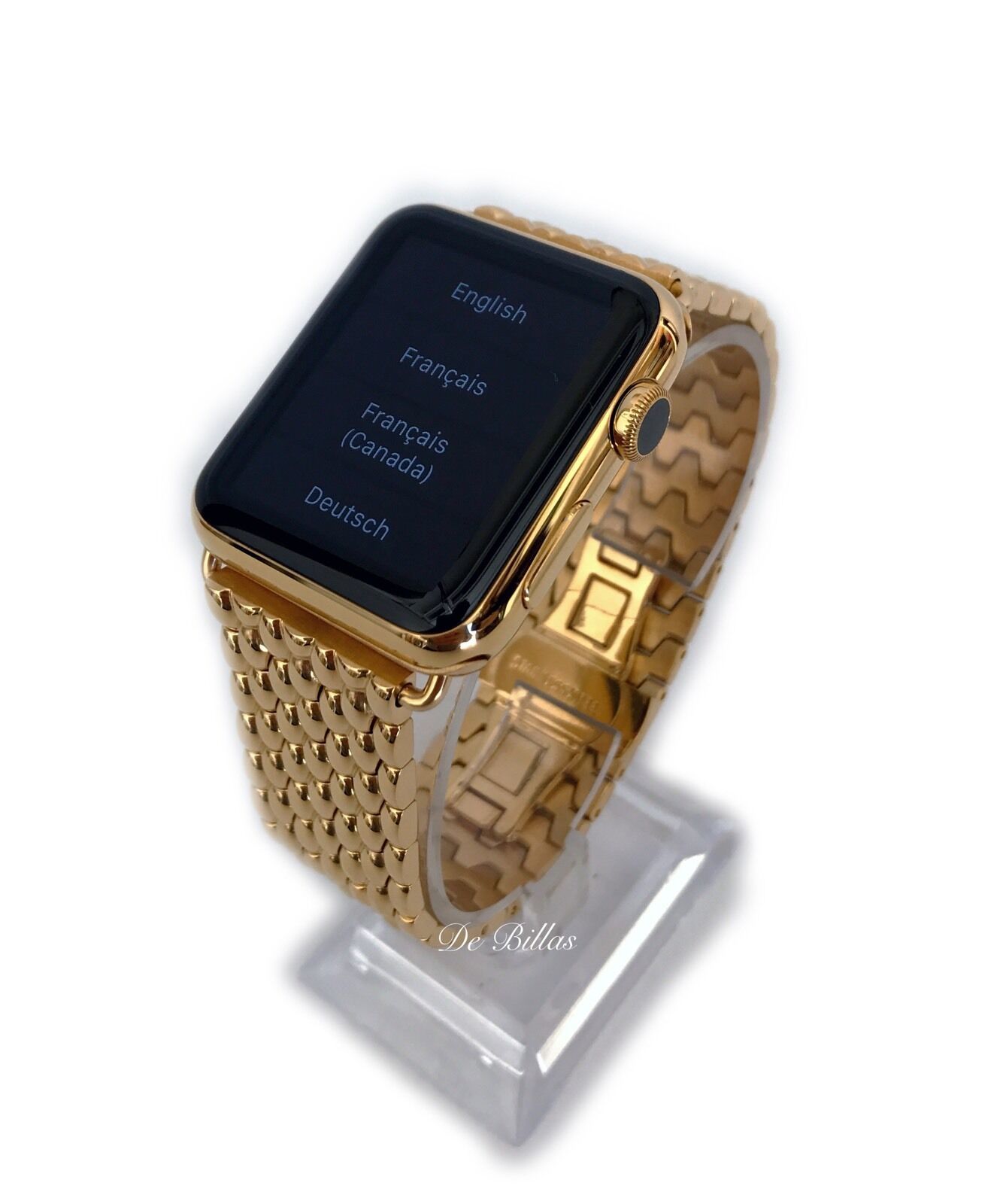 Original Apple Watch Gen 1 stainless steel customized and professionally gold plated by De Billas with an industrial grade of authentic 24 Karat Gold.