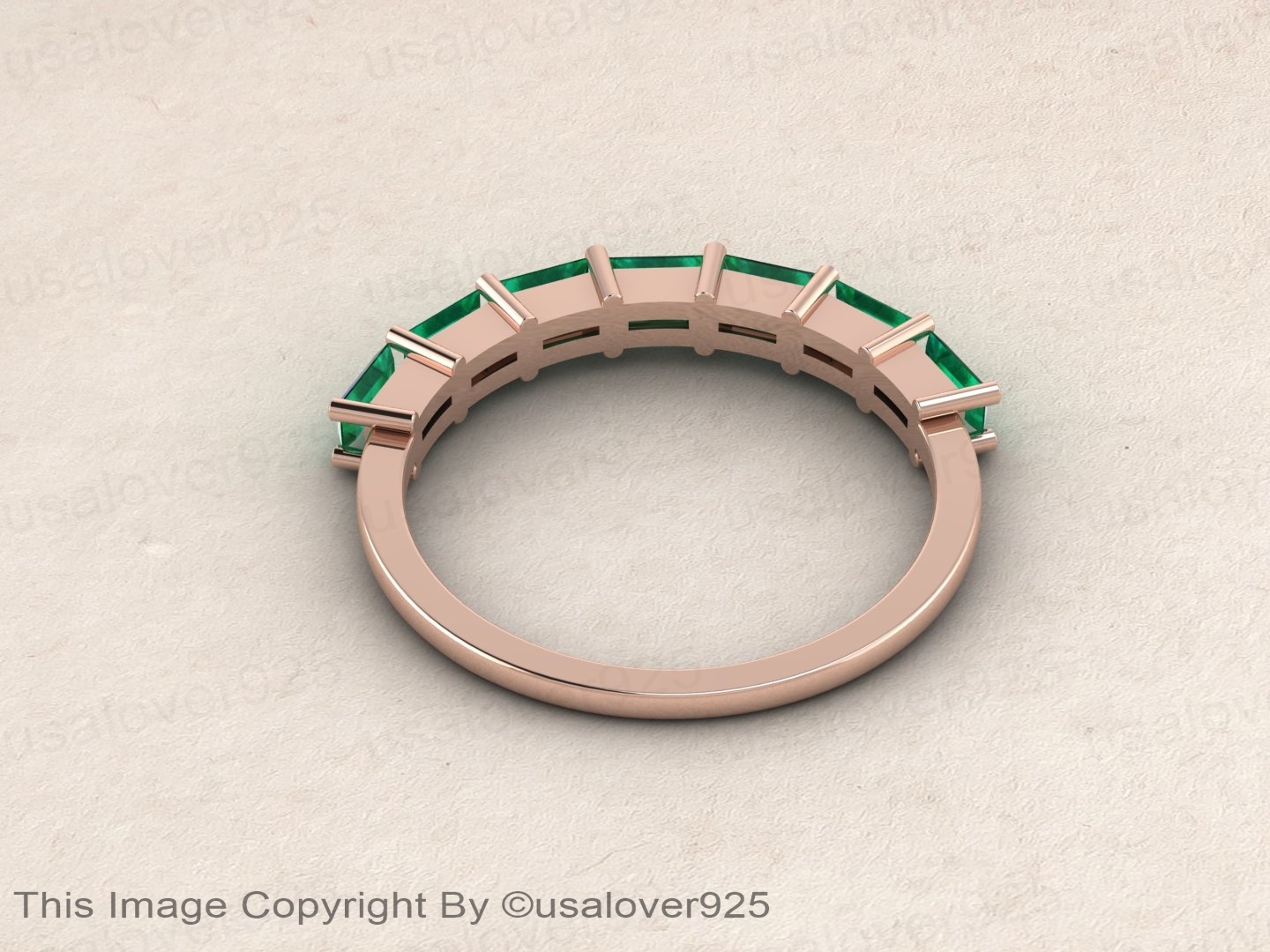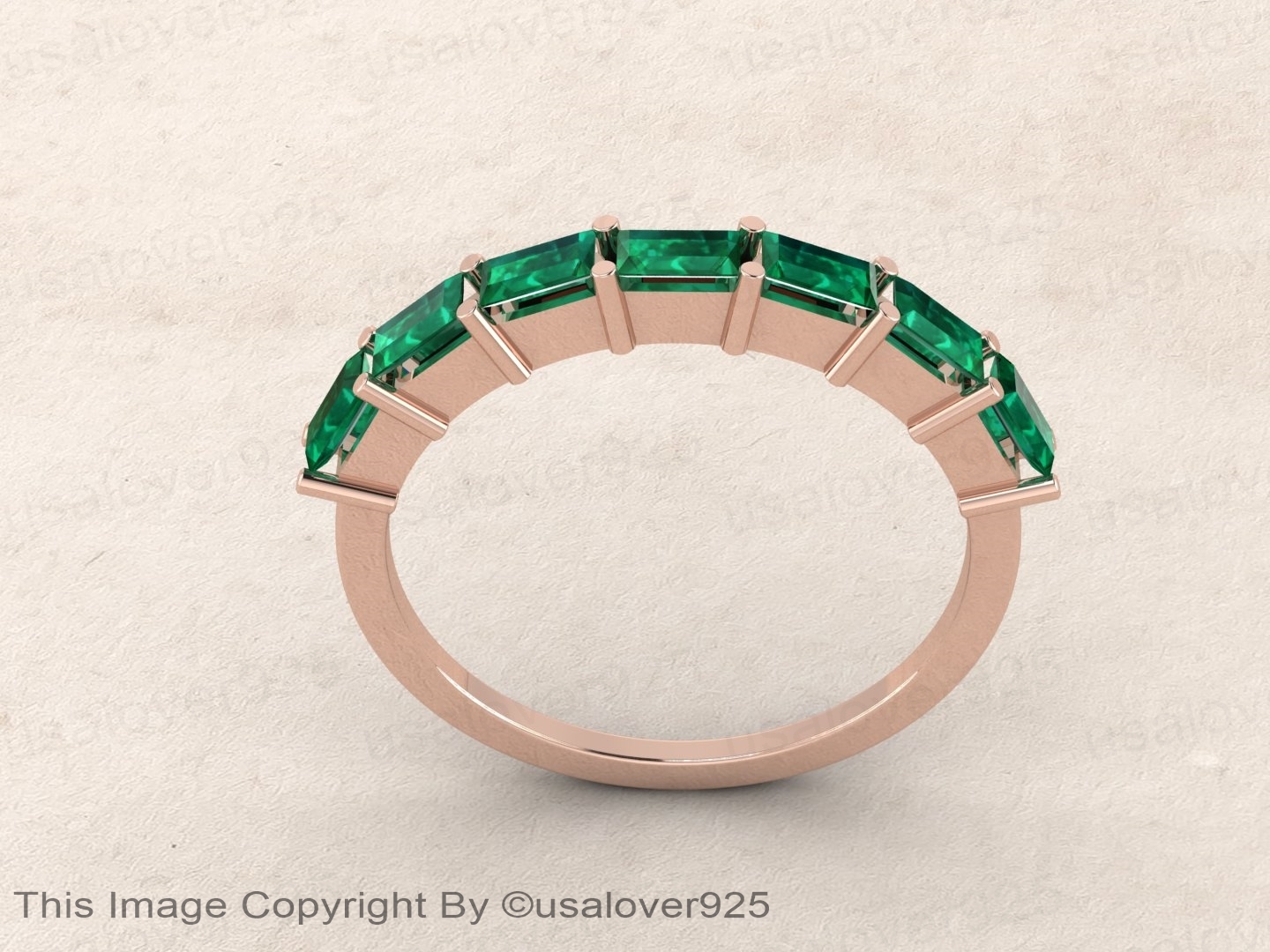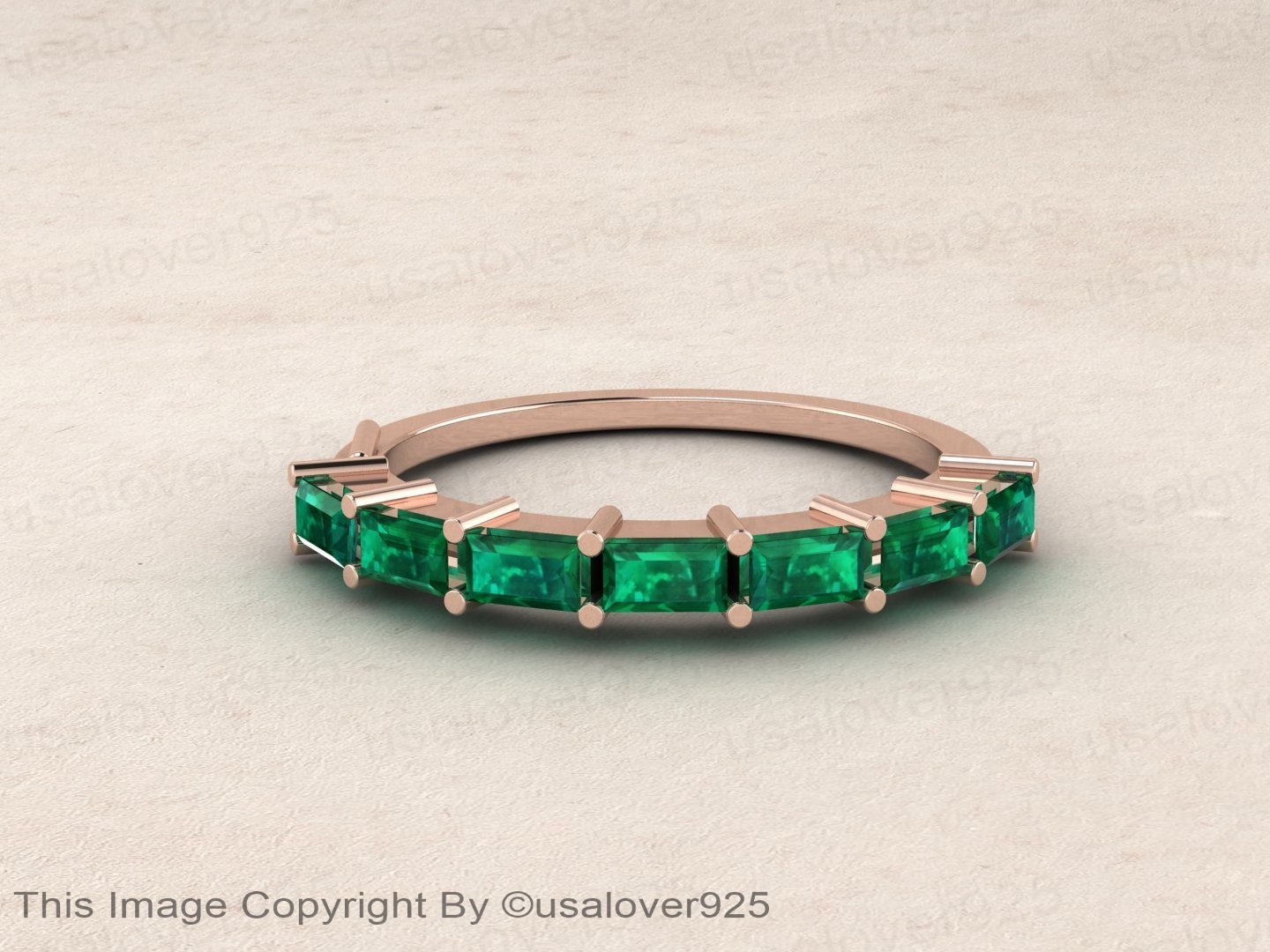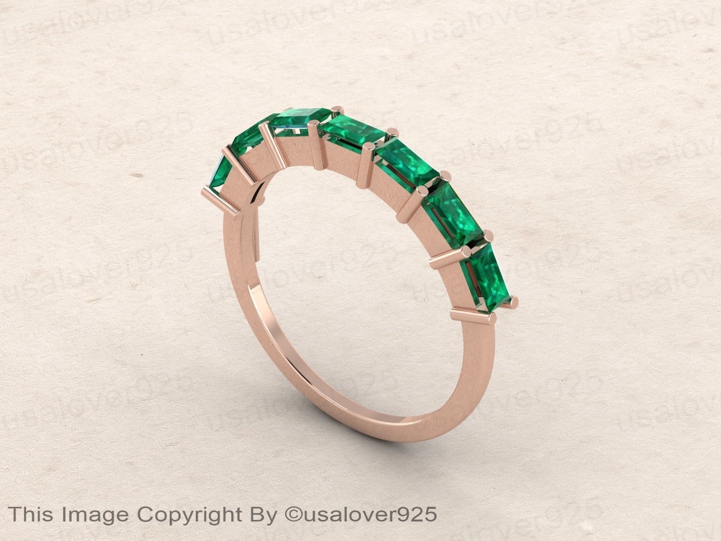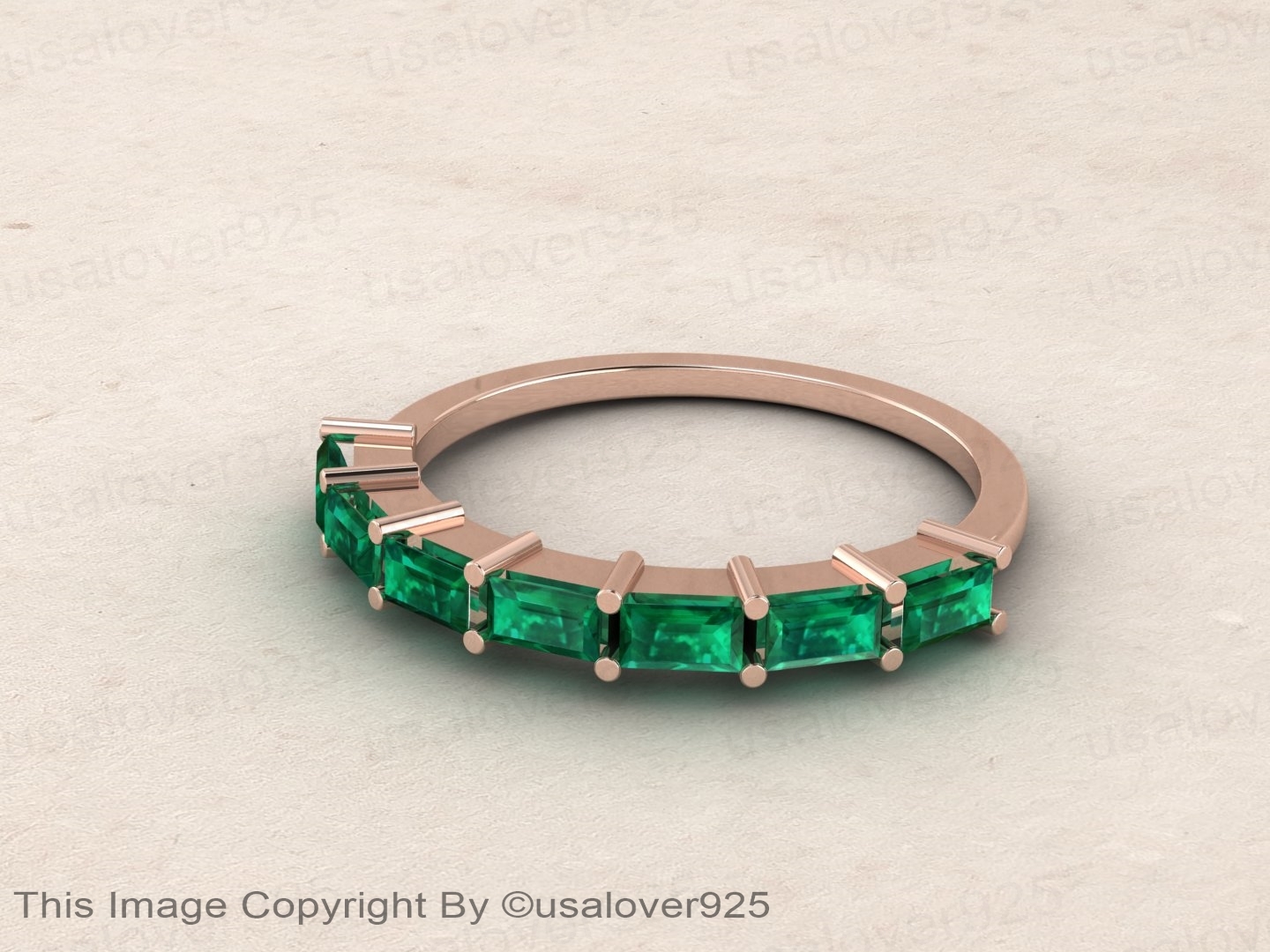 Emerald Baguette Gemstone Sterling Silver Modern Women Wedding Ring Jewelry