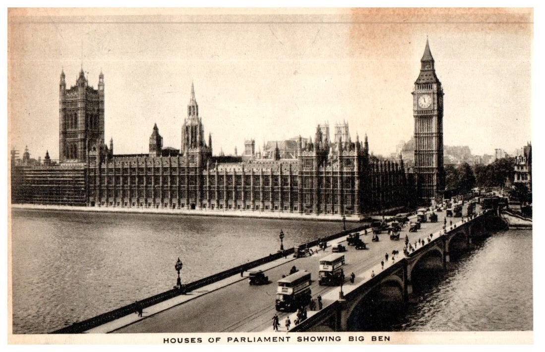 Houses Of Parliament Showing Big Ben London England Black And White Postcard