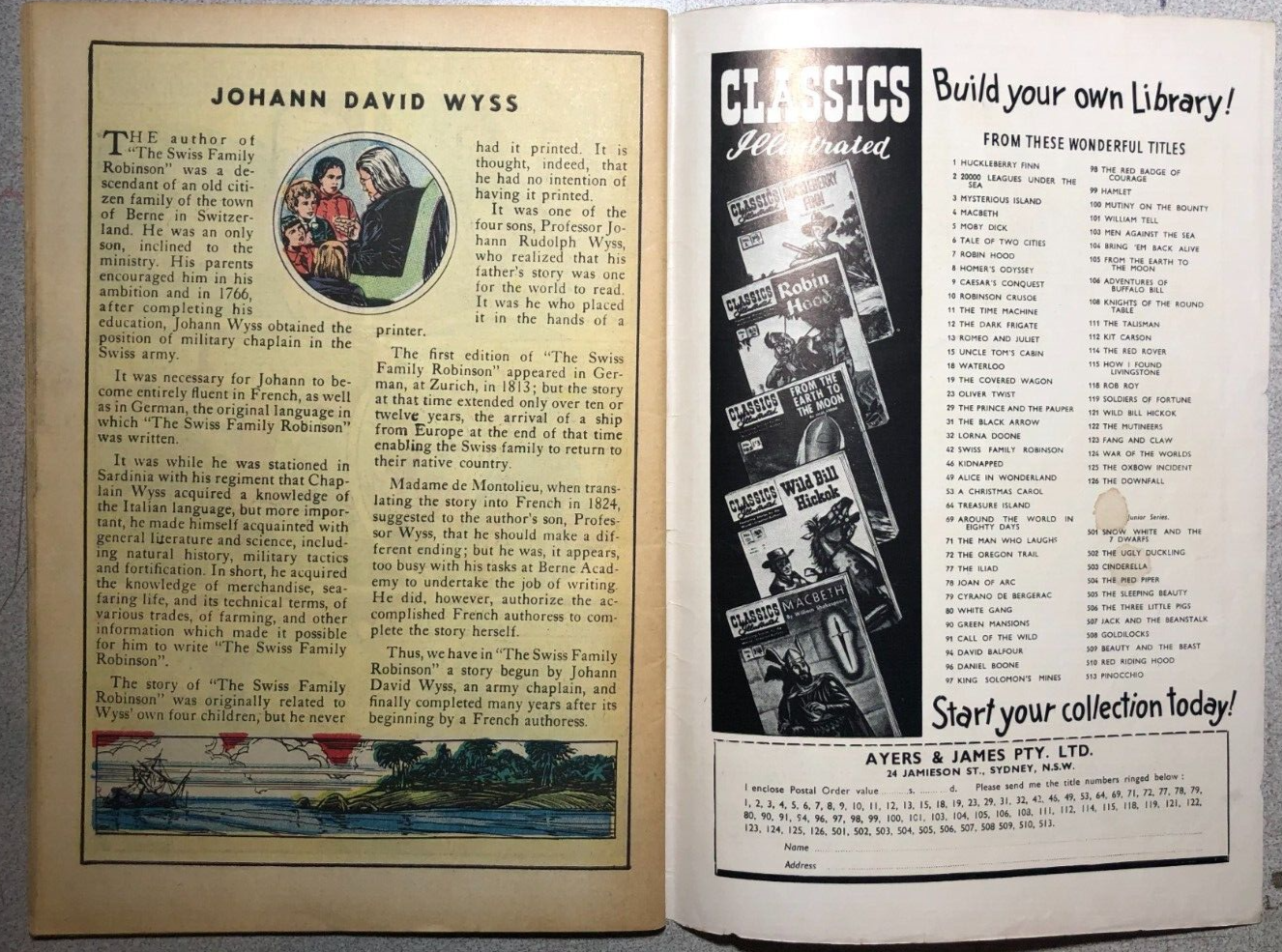 CLASSICS ILLUSTRATED #42 Swiss Family Robinson (HRN 126) Australian comic VG+