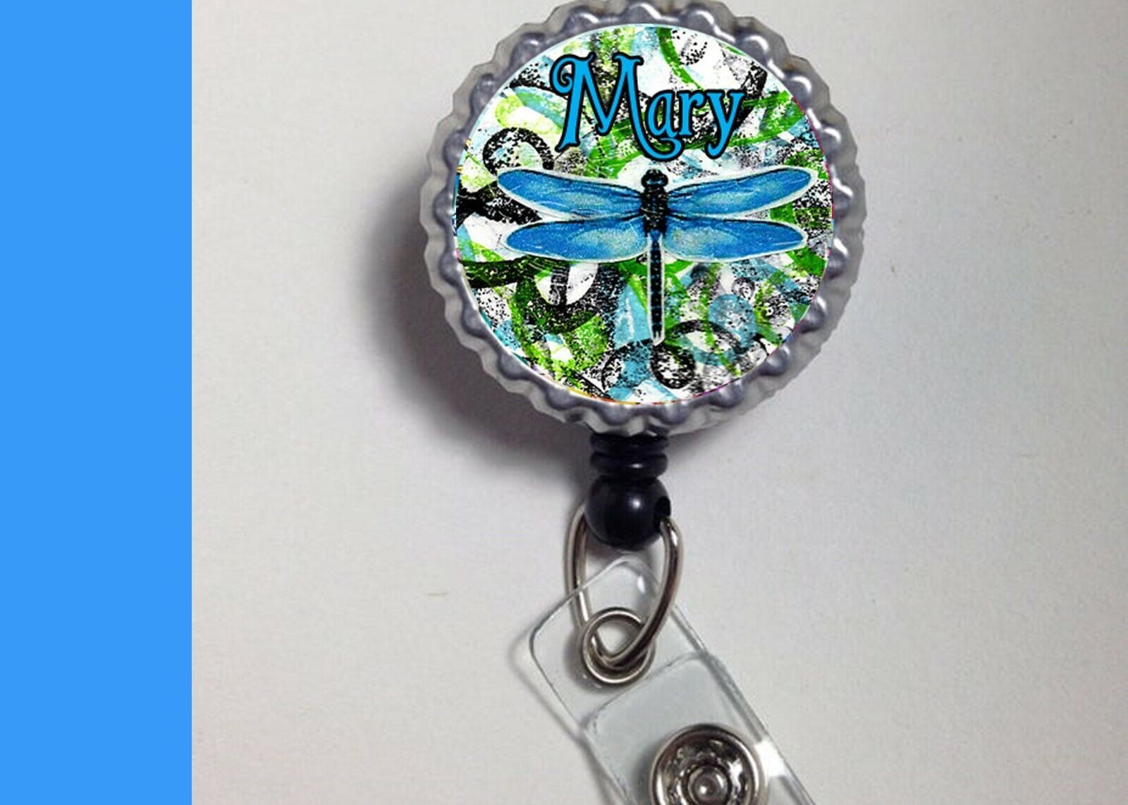 dragonfly personalized w/ur name Badge Retractable Reel ID Holder nurse cna