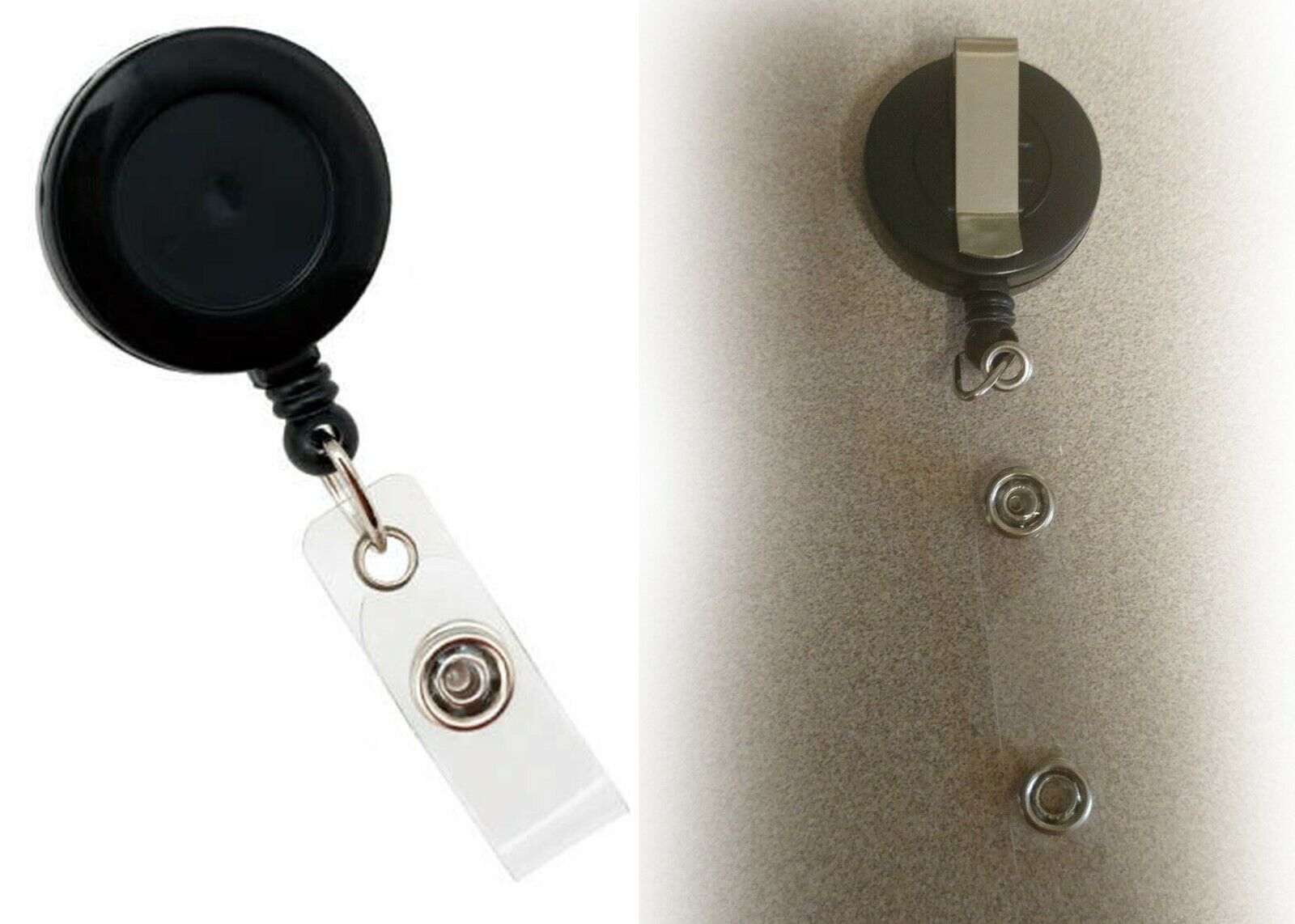 THis IS A VERY CUTE BLACK AND SILVER RETRACTABLE BADGE VERY WELL MADE VERY DURABLE very vivid pictures covered with a clear protective dome very long lasting... fast shipping ?..1.5 inch round... very cute for Dentist and assistants hygienist etc....choose your clip style...slide clip...or alligator clip rotates 360....