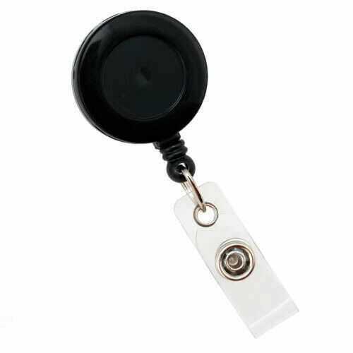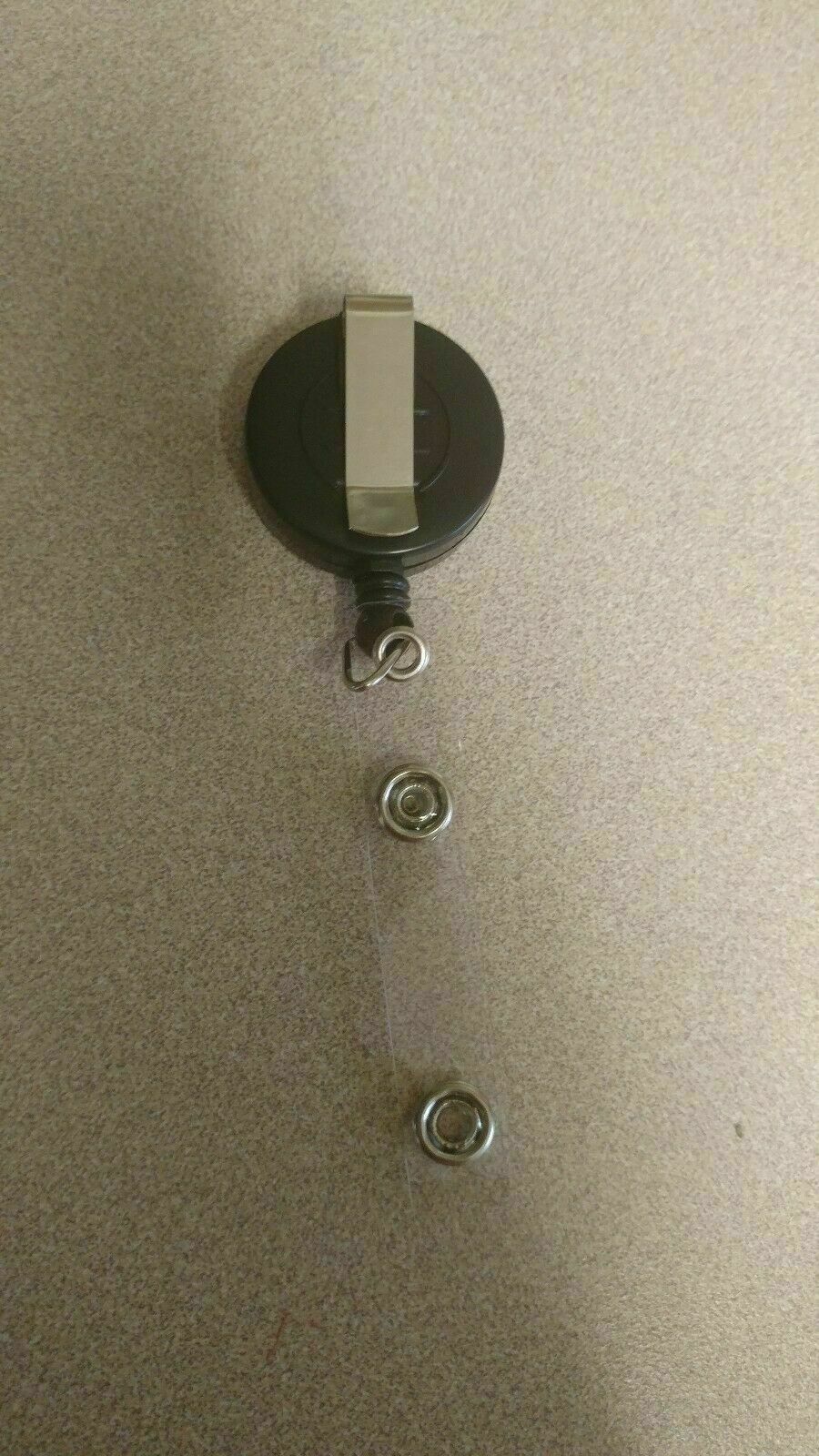THis IS VERY CUTE BLACK AND SLVER RETRACTABLE BADGE VERY WELL MADE VERY DURABLE ?..1.5 inch round....Vivid Images and a protective covering....Blue devils