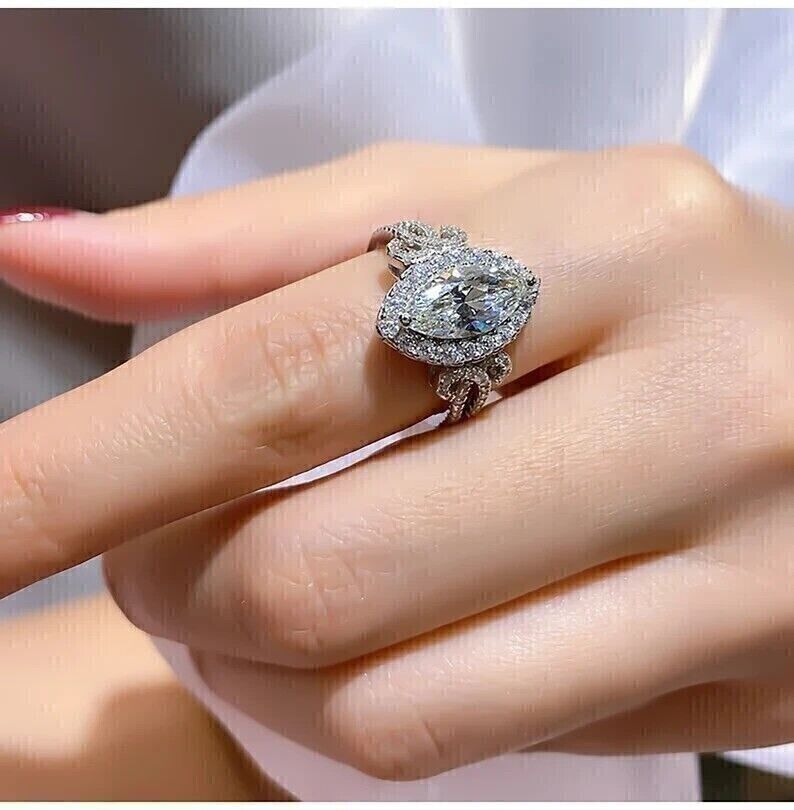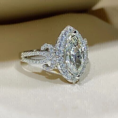 Women's 4.00 Ct Marquise Cut Moissanite Engagement Ring 14K White Gold Plated