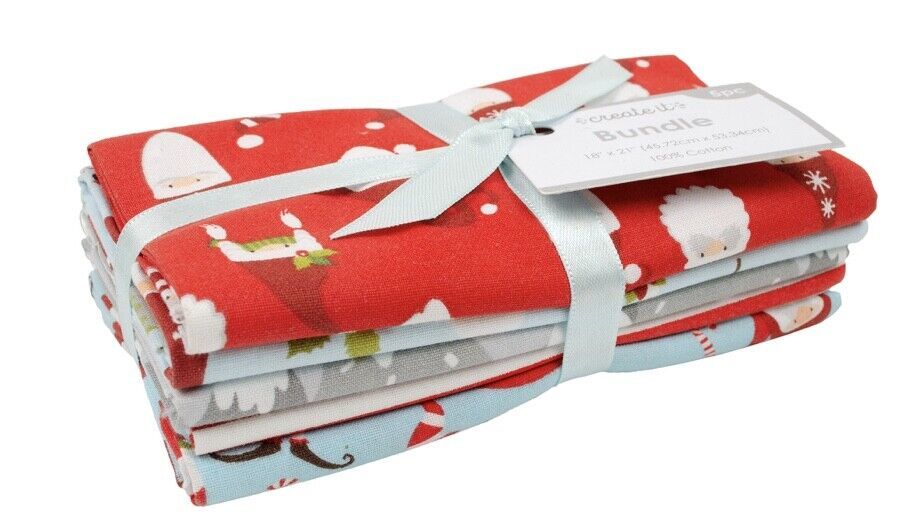 Create It 18"x21" Precut Sewing Craft Fabric Bundle, Holiday Gnome, 5 Pack