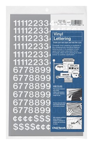 Headline Sign 6" Self Stick White Permanent Numbers, Gothic, 21 Total