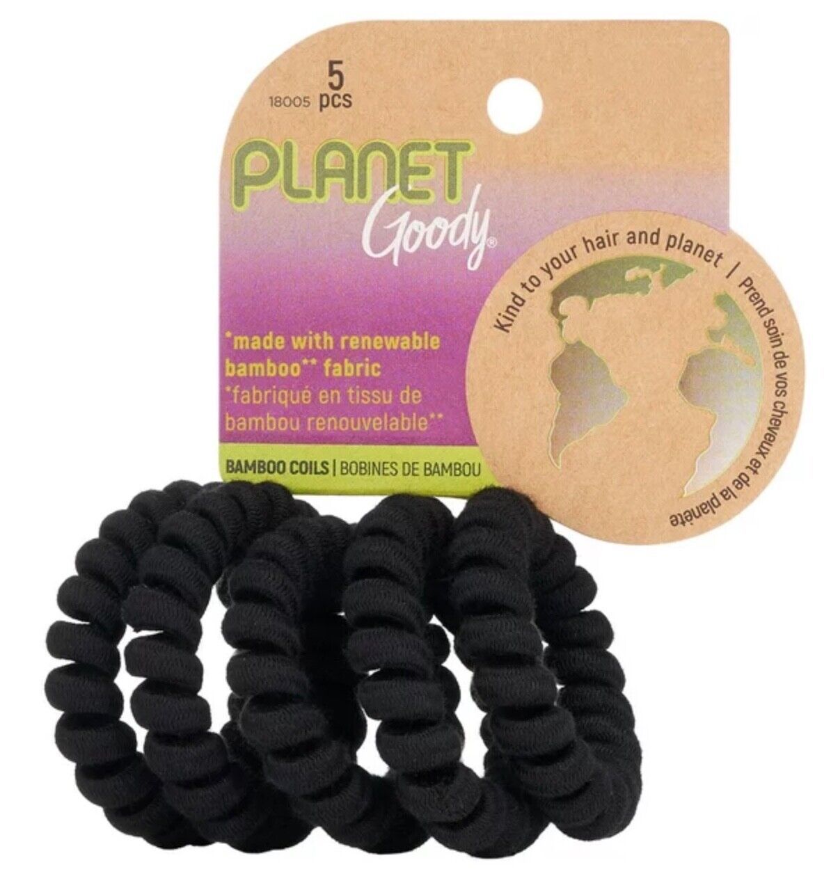 Planet Goody Bamboo Fabric Coil Ponytail Holders, Pack of 5, Black