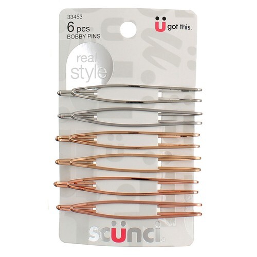SCUNCI Real Style Metal Bobby Pins, Pack of 6 (Gold, Silver and Rose Gold)