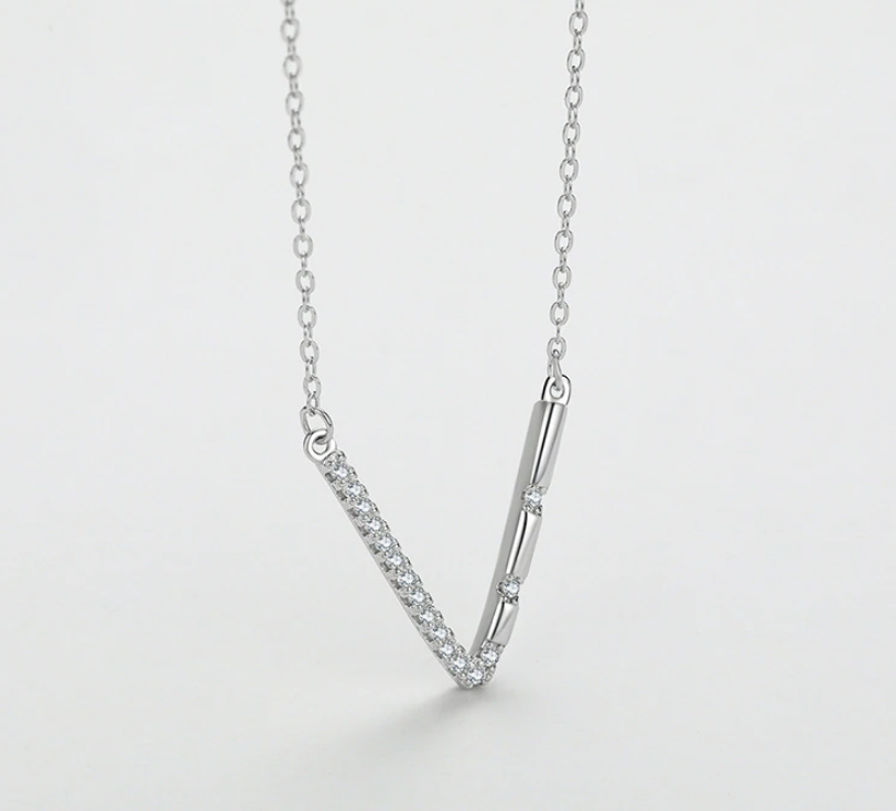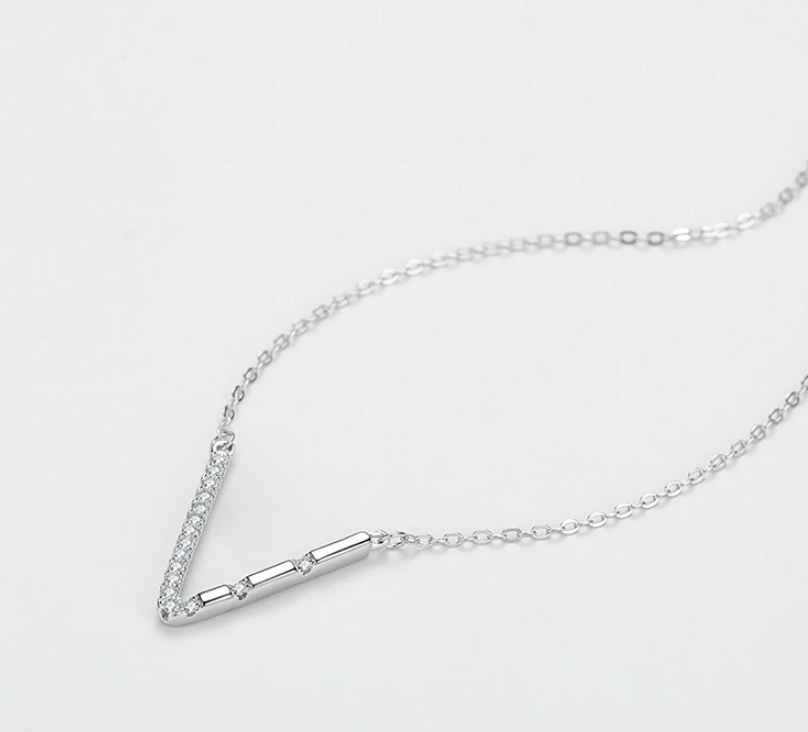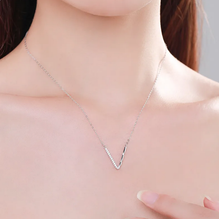 Exquisite 925 Sterling Silver Dazzling Crystal Zirconia V-Style Pendant Choker