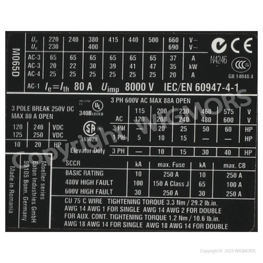 On this listing we offer Brand New: Contactor EATON 3-pole DILM65 XTCE065D00G2.
