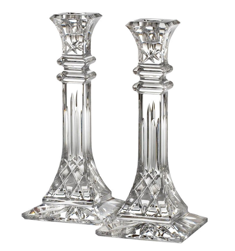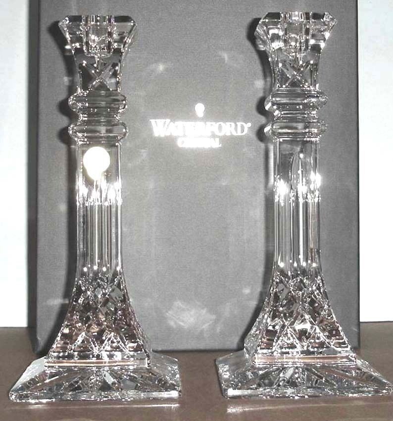 Magnificent pair of stately candlestick holders decorated with Waterford's
