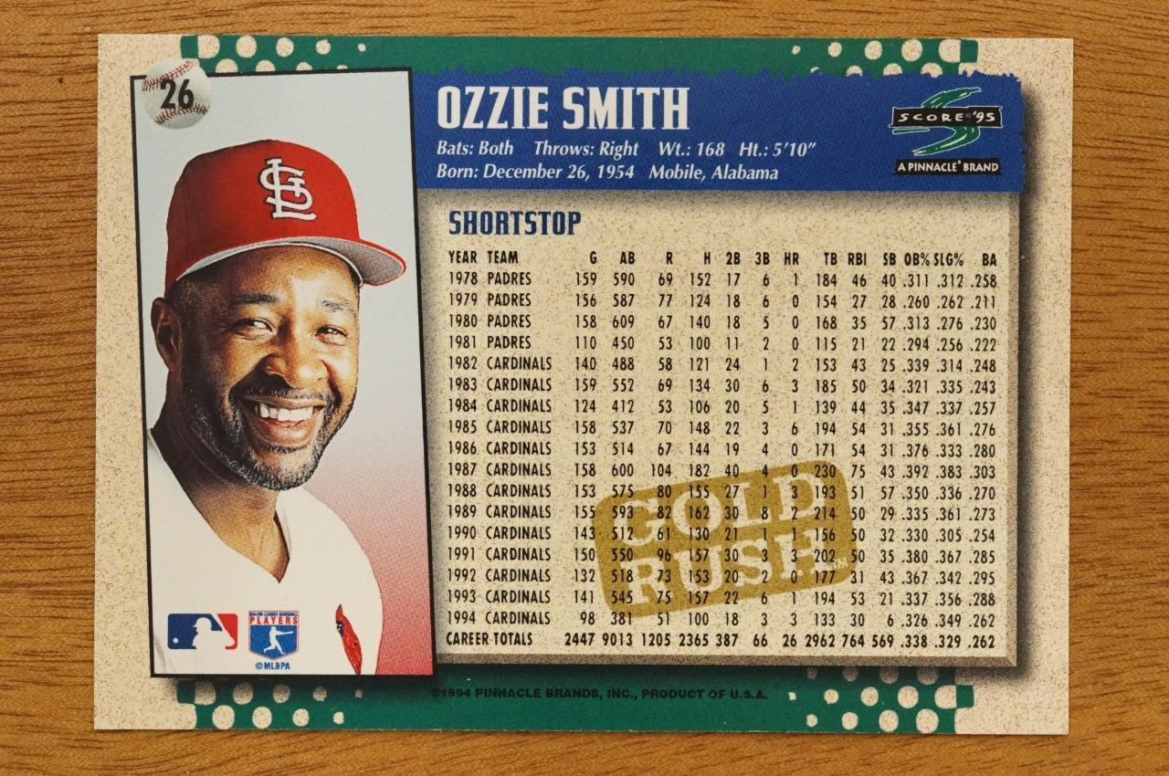 1995 Score Gold Rush Ozzie Smith #26 HOF St Louis Cardinals Baseball Card