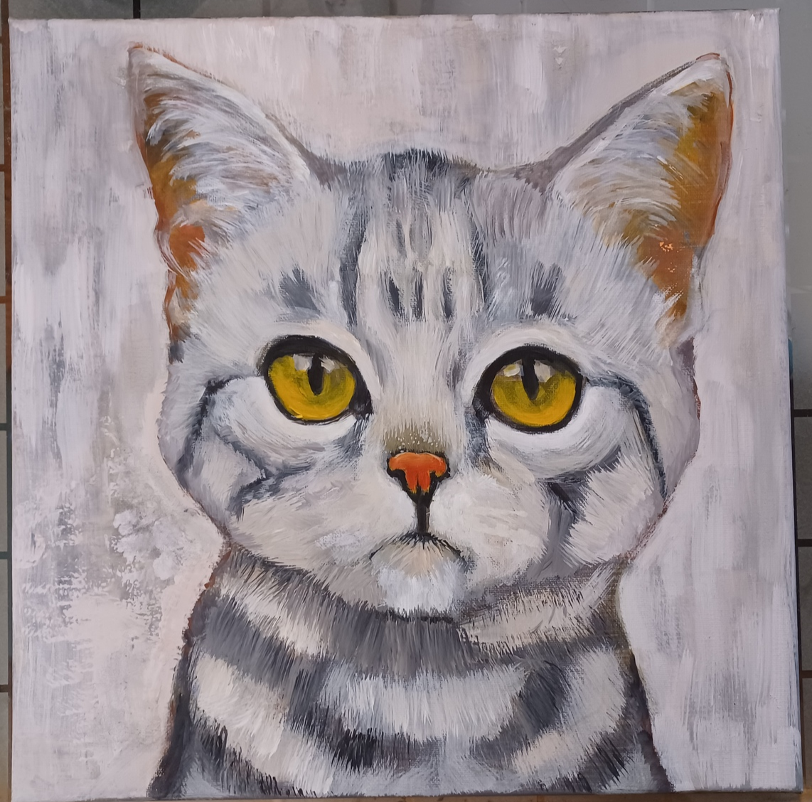 Original Acrylic Canvas Painting 14 X 14 Cat and similar items