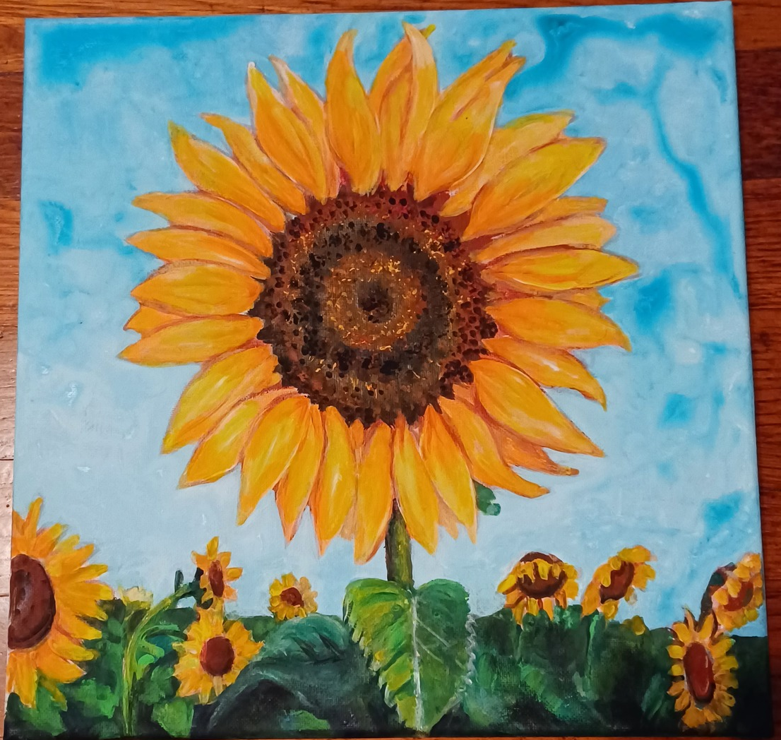 Original Acrylic Painting 14 x 14 Sunflower on Canvas