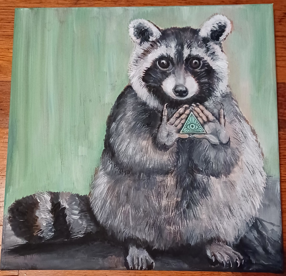 Original Acrylic Painting 12 x 12 Raccoon on Canvas