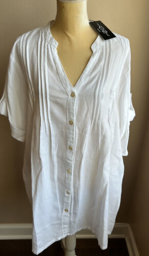 Club Z Collection Womens Tunic White Swim Cotton Cover up Sz XL Herringbone