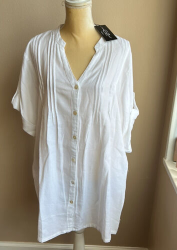 Club Z Collection white SWim Beach Cover up tunic shirt style