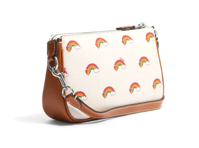 New Coach CJ657 Nolita 19 With Rainbow Print Wristlet Clutch Chalk Multi