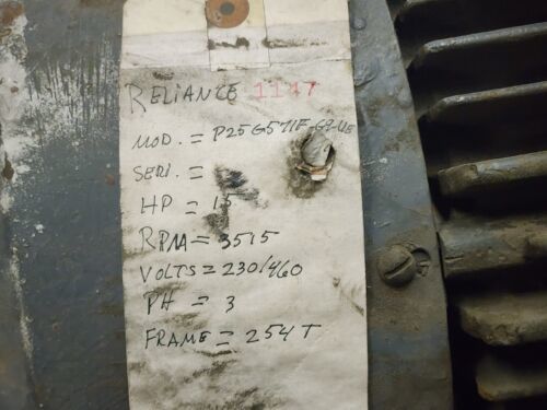 15 hp Reliance Electric Motor 230/460 Volt 3515 RPM P25G571F-G9-UE Class B Ins.