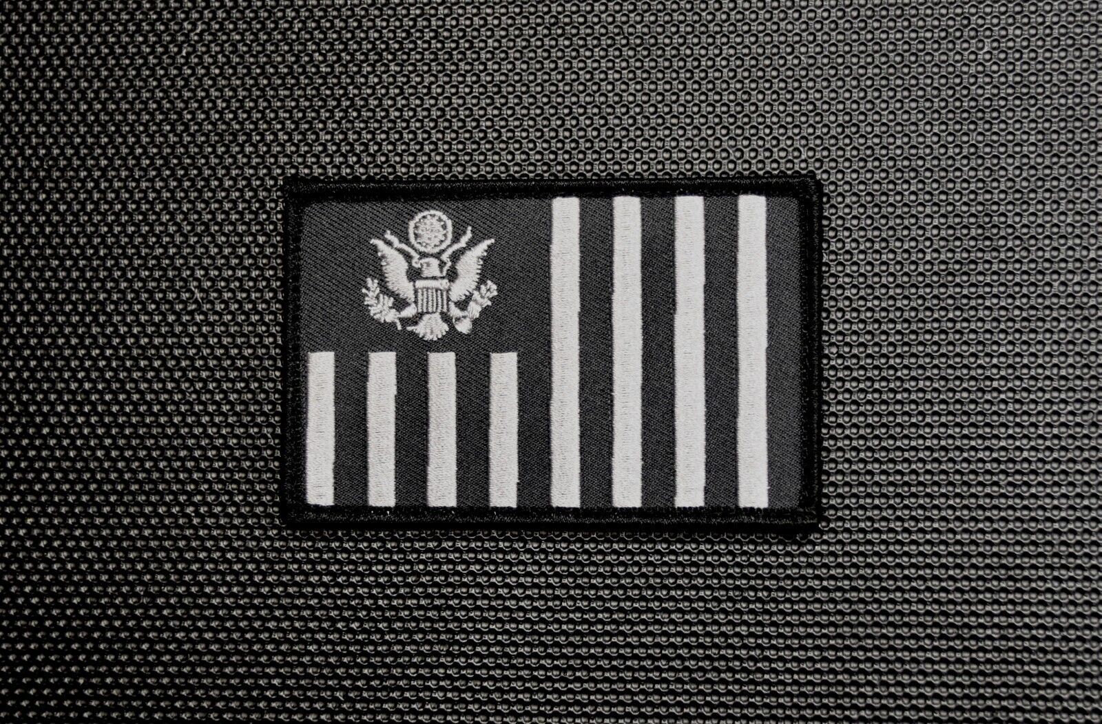 Embroidered US Customs Border Patrol Ensign flag patch in Law Enforcement color scheme with hook loop backing. Measures 3.5" x 2.25".