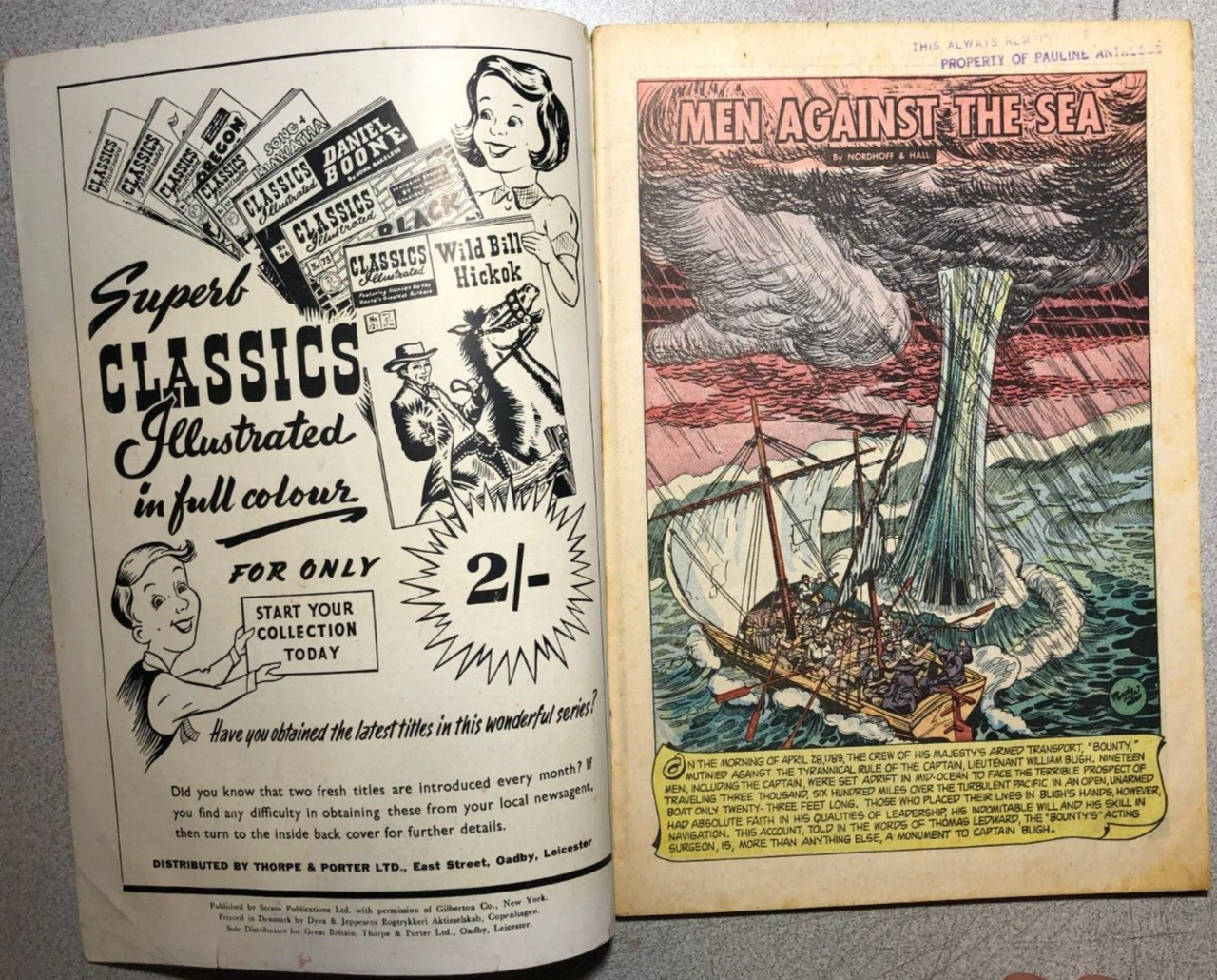 CLASSICS ILLUSTRATED #103 Men Against the Sea (HRN 126BL) Australian comic VGVG+