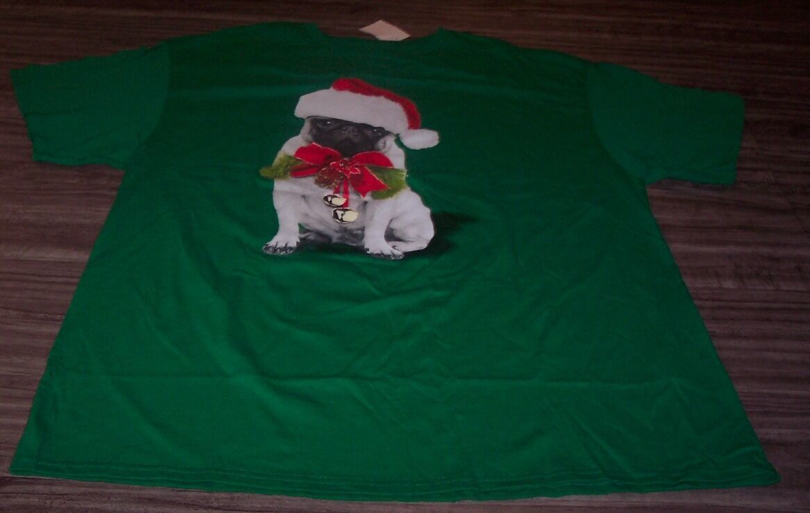 FUNNY PUG PUPPY DOG IN SANTA HAT CHRISTMAS T-Shirt MENS 2XL XXL NEW w/ TAG