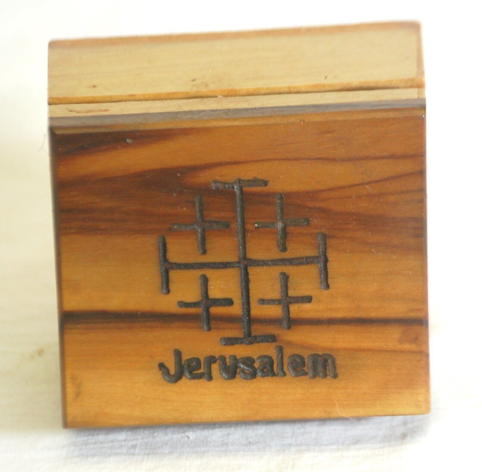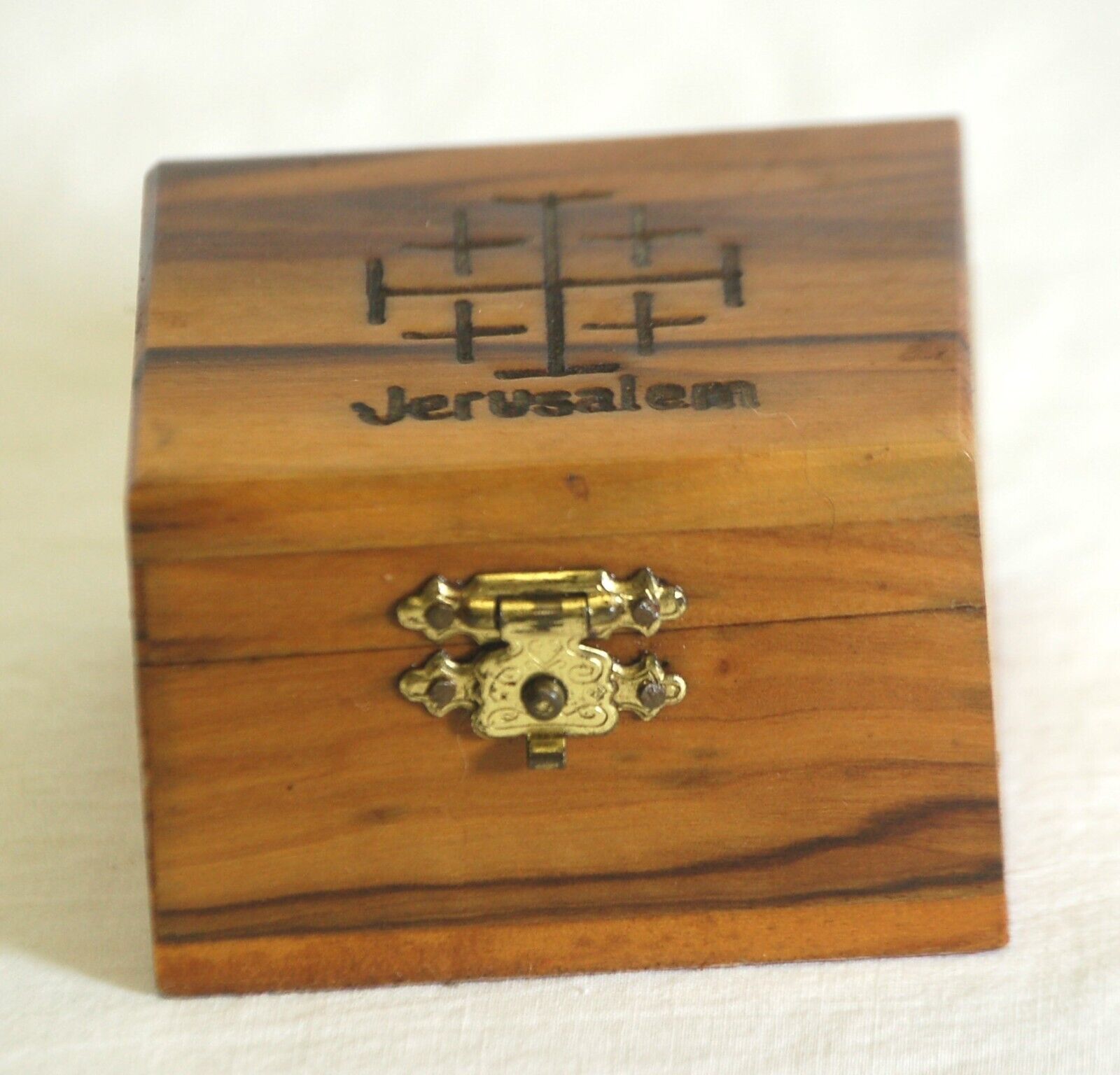 Jerusalem Olive Wood Cross & Trinket Box Hinged Lid