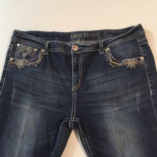 Size 33 ~ 40 x 32.5 ~ Grace in LA Decorated/Bling Easy Fit Stretch Jeans