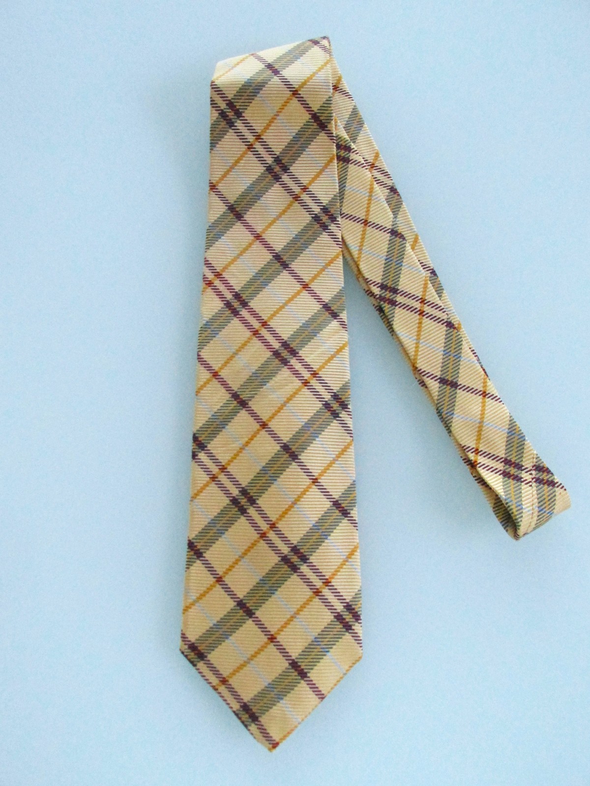 Description: Up for sale is a Robert Talbott "Best of Class" designer men's silk tie. The tie is handmade in the USA of 100% silk.The tie has a multicolored plaid pattern in gold, olive green, blue plum on a yellow background. Dimensions are approximately 58" long x 3.90" wide. This tie is in excellent condition.