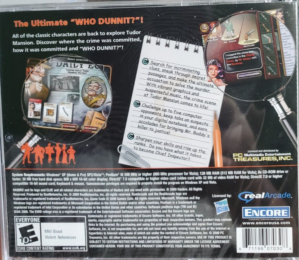 Clue Classic 2009 Hasbro Encore PC Windows XP Vista Compatible