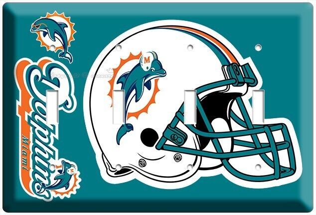 MIAMI DOLPHINS FOOTBALL TEAM LOGO 4GANG LIGHT SWITCH WALL PLATE MAN CAVE TV ROOM