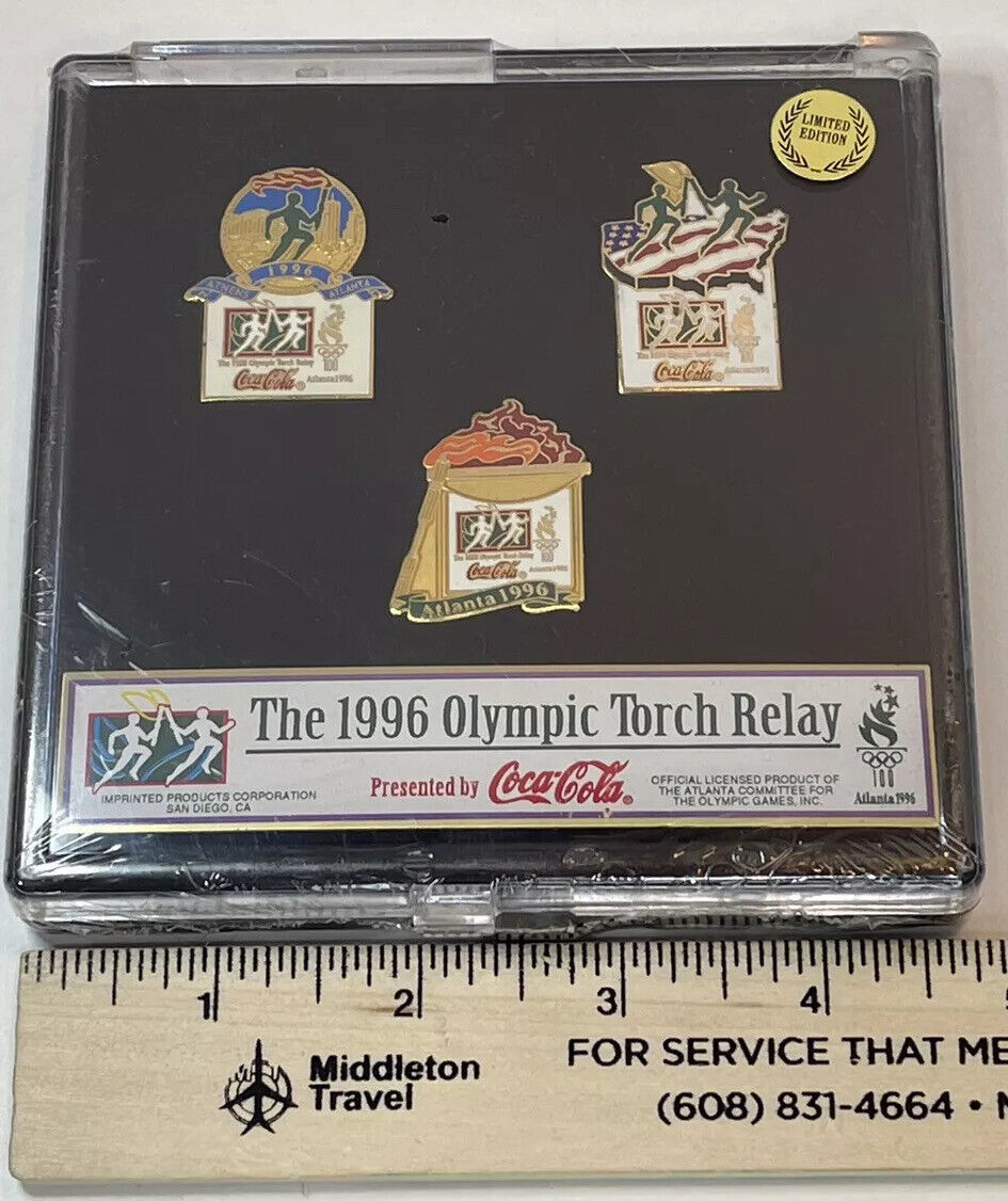 1996 ATLANTA OLYMPICS TORCH RELAYS COCA COLA 3 LAPEL PIN SET