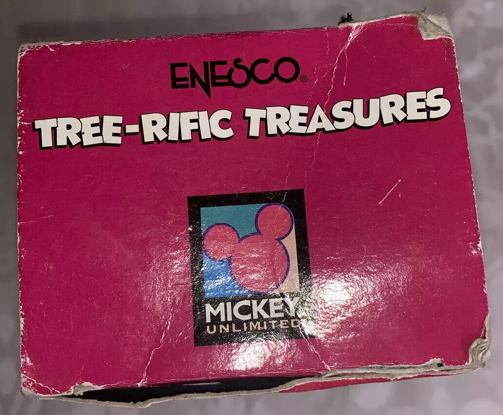 Condition: Used. Box shows a lot of ware from storage and age. Box has creases, dings, scuffs scratches (SEE PHOTOS) Mickey ornaments is in good condition (see photos). Please review all pictures before purchasing because they are part of the description and helps to assess condition).