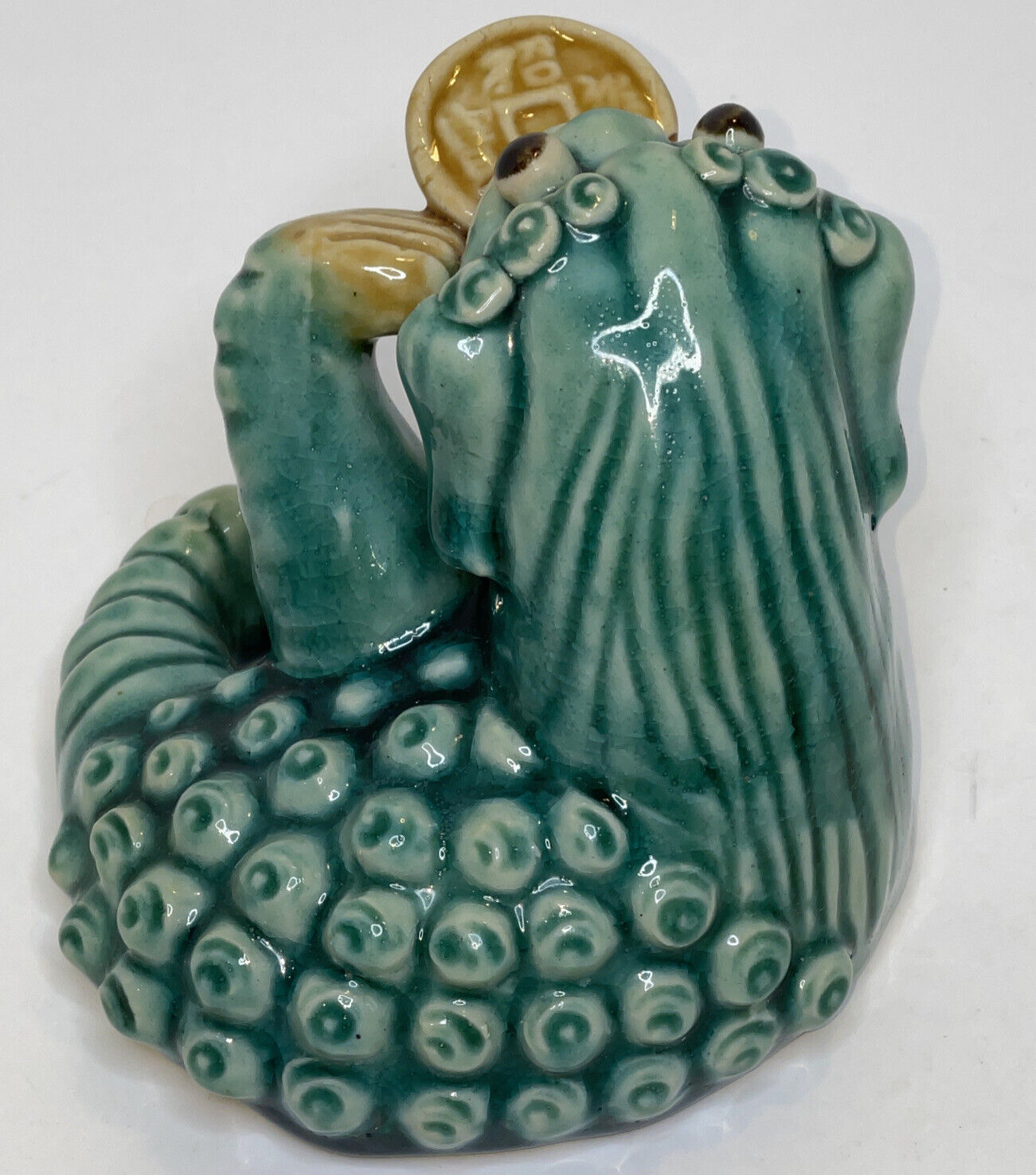 Ceramic Oriental Foo Dog Dragon Lucky Coin..