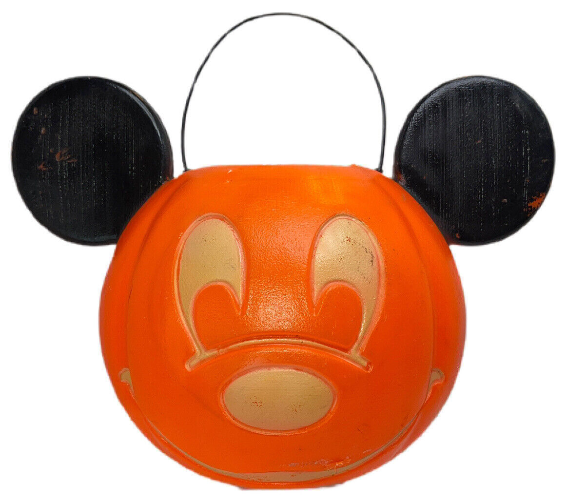 Vintage Mickey Mouse Trick or Treat Halloween Candy Bucket Plastic Pail